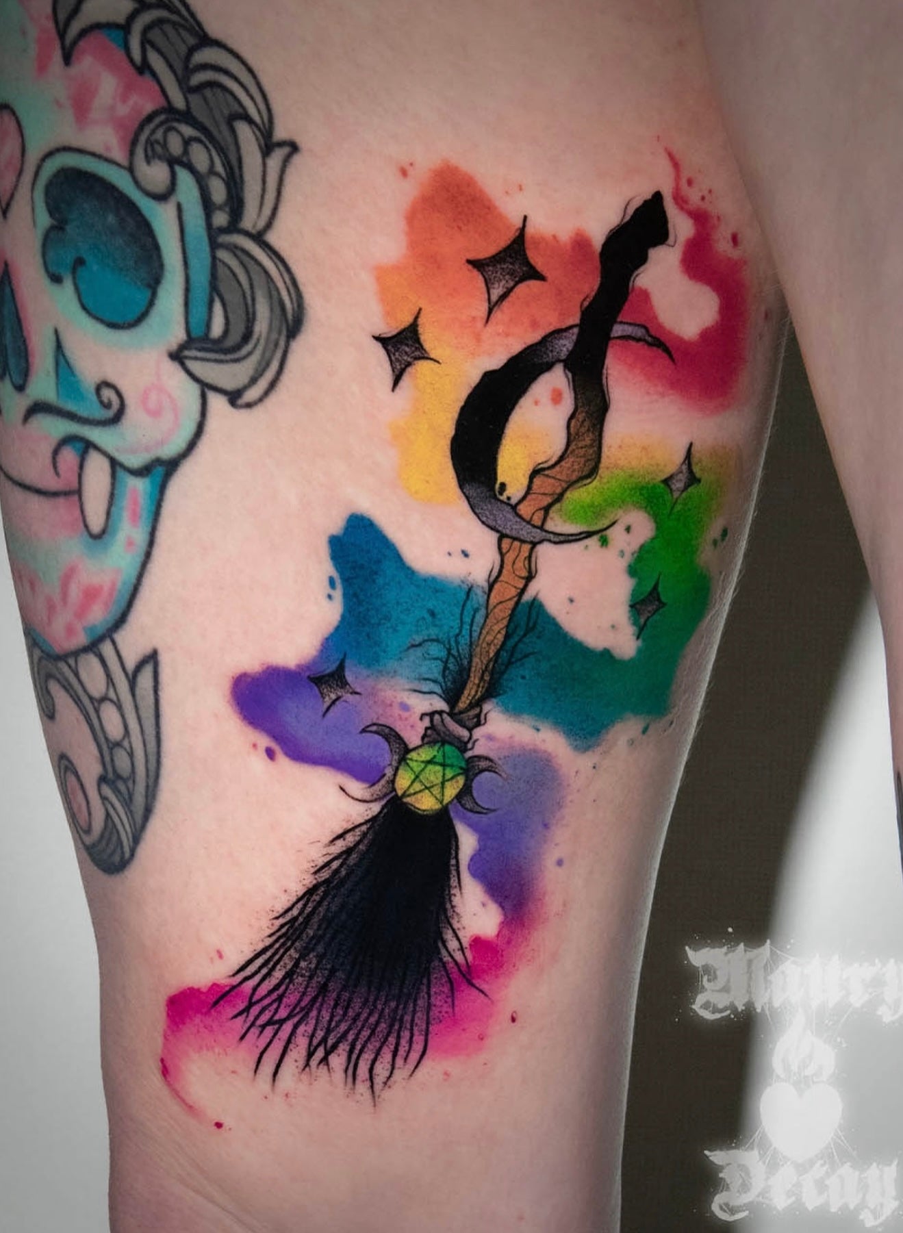 A: I’m a tattoo artist who cares about both the craft and the ethics behind it. I do watercolour, abstract, bold tattoos, and blackouts. I like making pieces that are expressive and meaningful, that can give the client a little self-esteem boost, while still keeping a nice flow and composition.