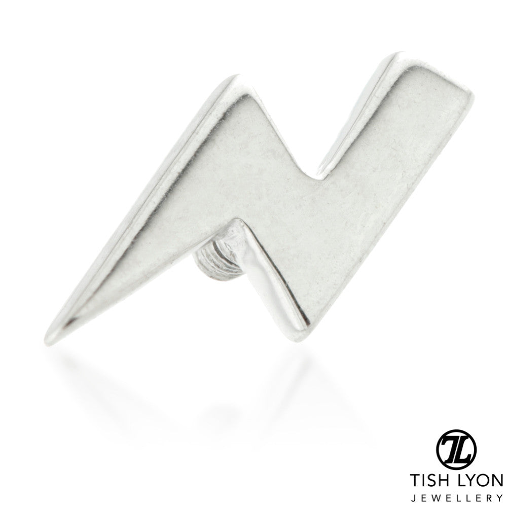 TISH LYON® 18ct Gold Lightning Bolt Internal Thread Attachment To fit TL18Q16-Base (18k Gold) or iLabBase (Titanium) 0.8mm Thread / 1.2mm Bar (European Thread) Gold: White or Yellow Left or Right Side /card Suitable for initial piercing