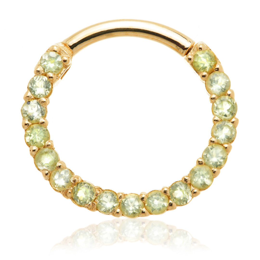 14ct Solid Gold Peridot Pave Front Facing Hinge Daith Ring