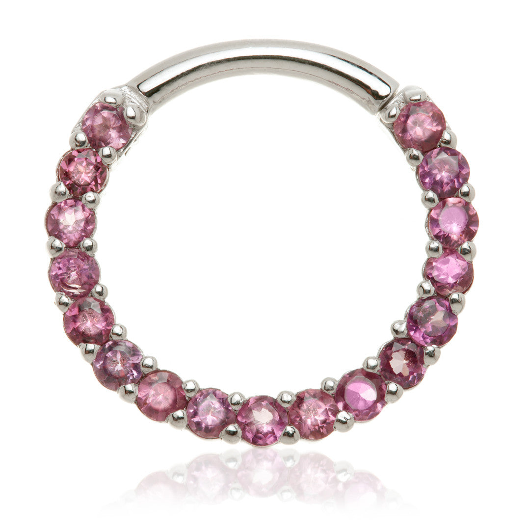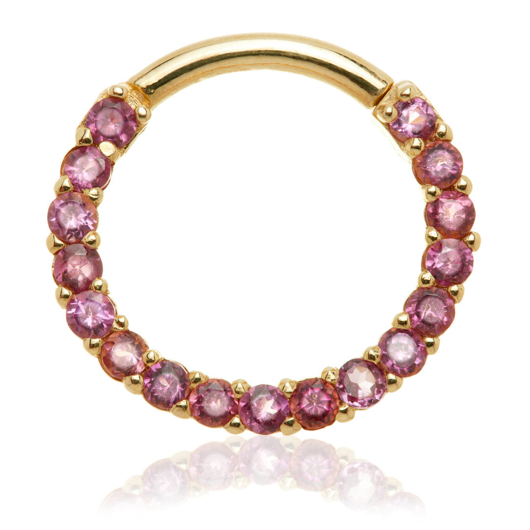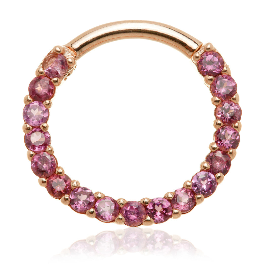 14ct Solid Gold Rhodolite Pave Front Facing Hinge Daith Ring