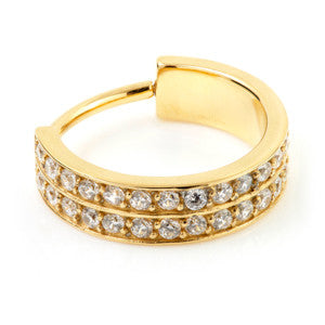24K Gold Steel Hinged Double Jewelled Conch Ring