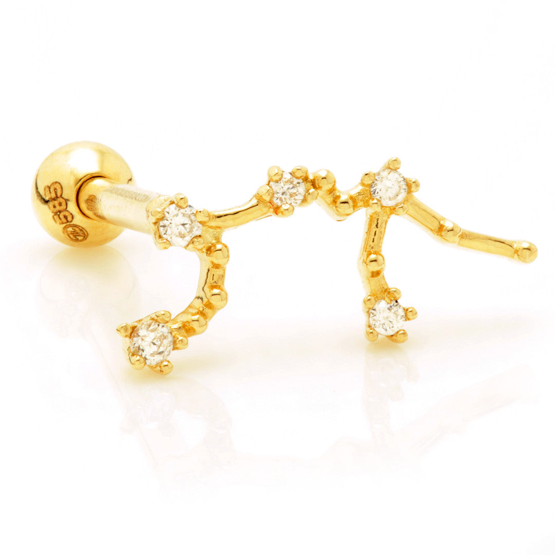 TISH LYON® Solid Gold Jewelled Zodiac Aquarius Constellation Microbar Gauge: 1.2mm Size: 8mm Ball Size: 3mm