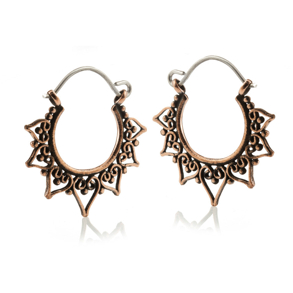 Copper Small Heart Hoop Earrings (Pair) Wear through tunnel or as earring Earring Pin is 925 Silver Gauge: 0.8mm / 20g External Diameter: 25mm Only to be worn in healed piercings