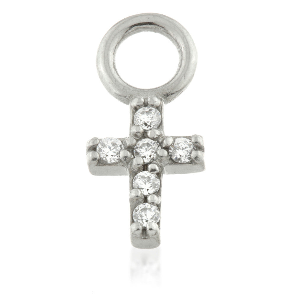 Crystal Cross Charm Attachment - Will fit on Hinge Segment Ring or BCR Cross Size: 5mm x 4mm