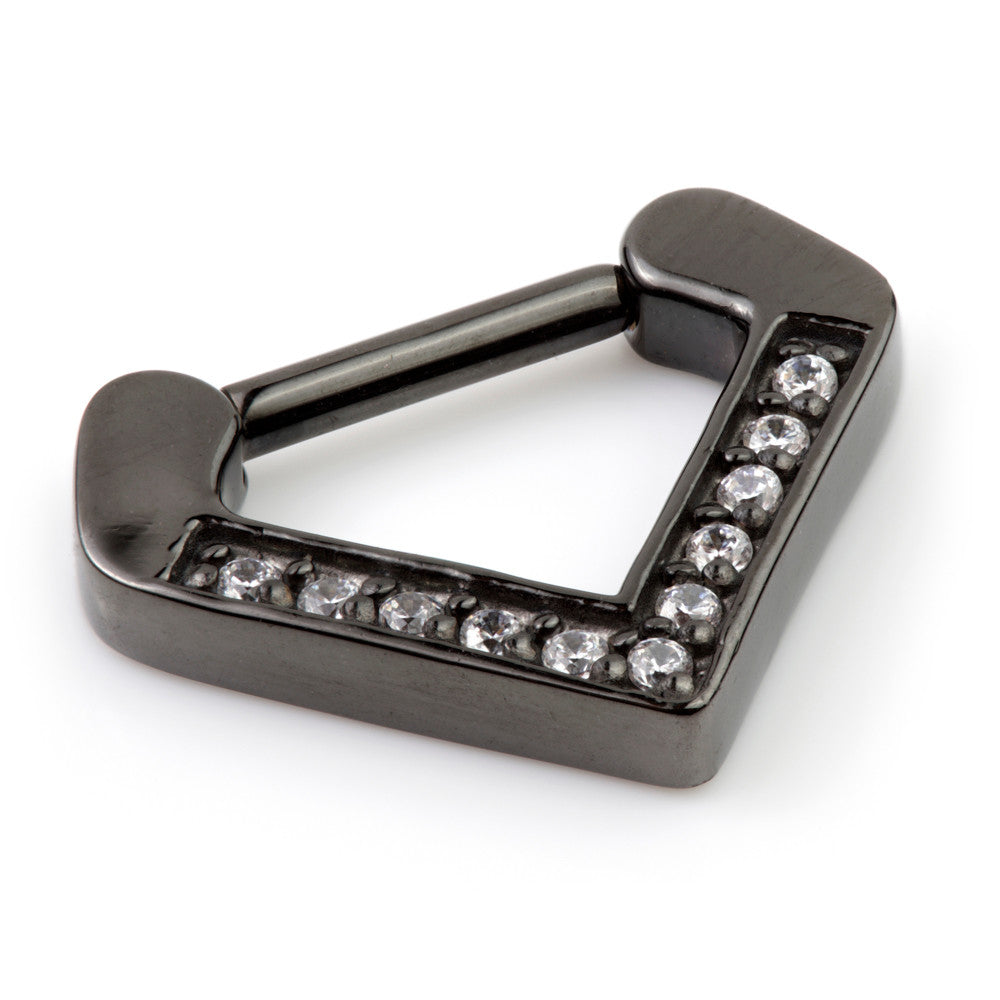 Gun Metal PVD on 316L Steel Hinged Inverted Jewelled Triangle Steel Septum Ring 1.2mm x 6mm or 8mm Gem Colour: Crystal