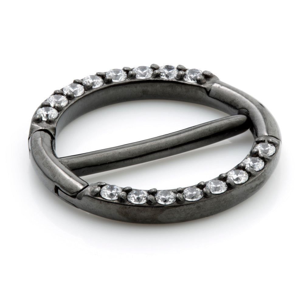 Gun Metal PVD Pave Swarovski Double Hinge Steel Nipple Clicker Similar fastening to septum rings Sizes: 12mm, 14mm, 16mm Gem: Crystal
