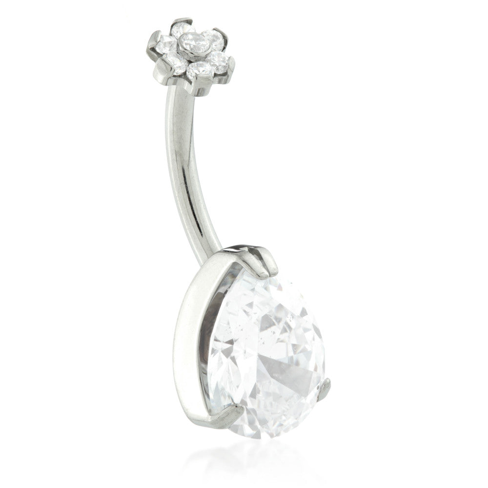 Internal Thread Ti Tear Gem Belly Bar with Gem and Ball Flower top Gauge: 1.6mm Size: 10mm Gem Colour: CR Medical Grade Titanium 6Al-4VEli ASTM:F-136