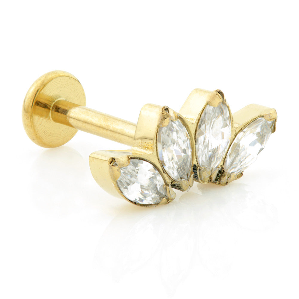 Internal Zircon Gold Ti Micro Labret with Marquise Gem Cluster Attachment (1.2mm)