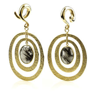Mandala Jewellery - Quartz with Tourmaline Oval Brass Ear Weights (pair)