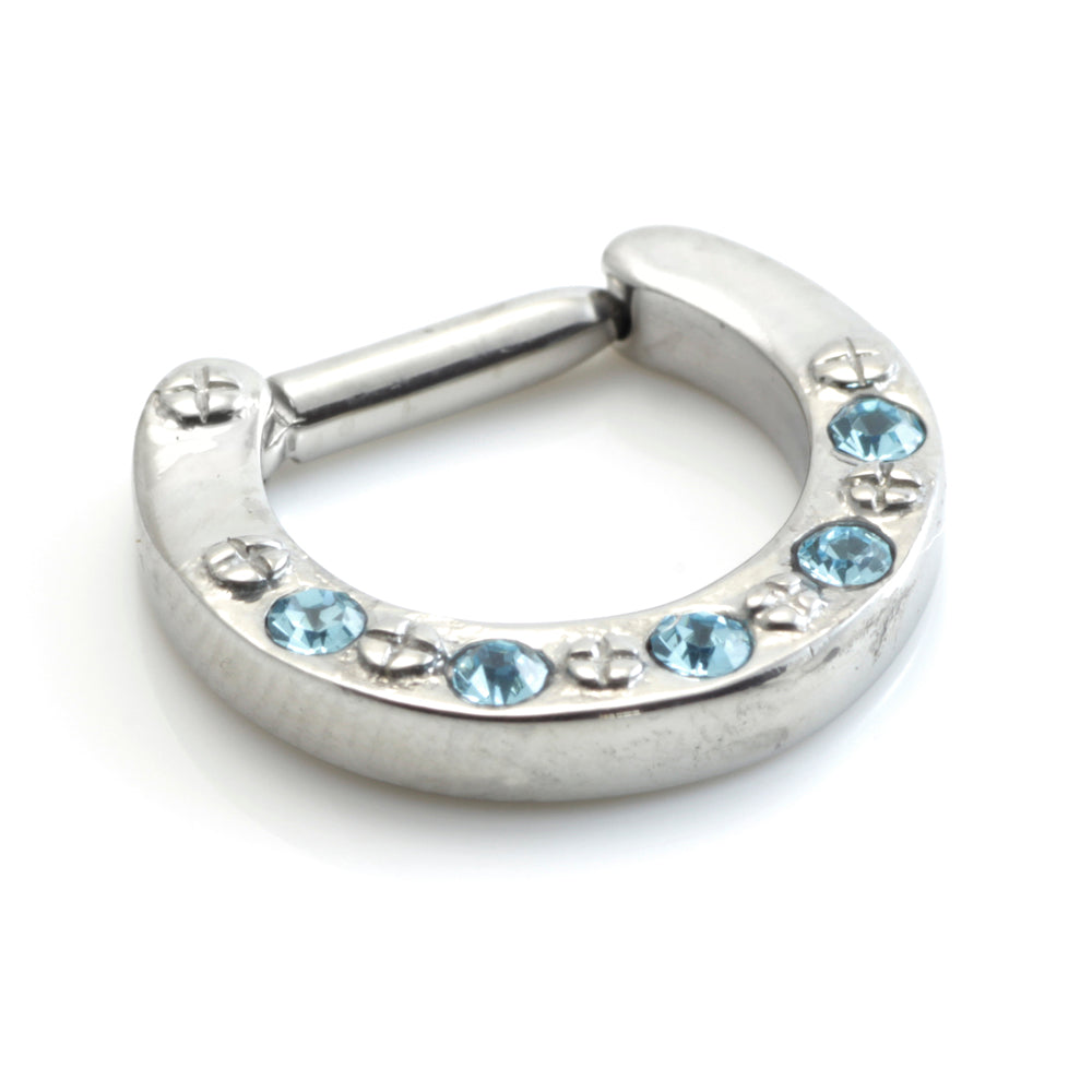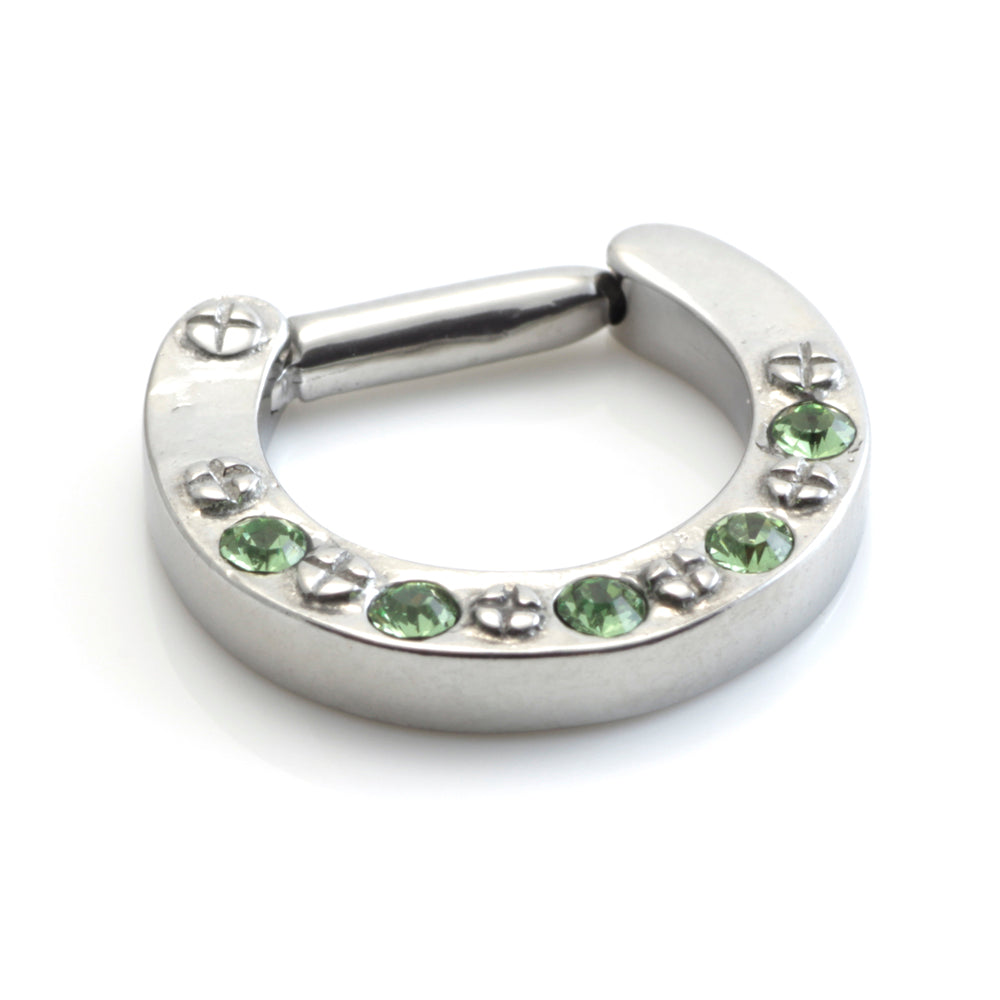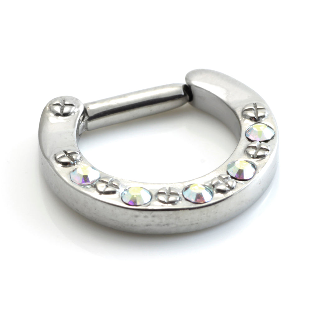5 Swarovski Gems in 316L Steel Hinged Septum Ring 1.2mm x 8mm or 1.6mm x 8mm Gem Colours: Crystal, Aqua, Rose, AB, Ame, Peridot, Jet, Lt Siam.