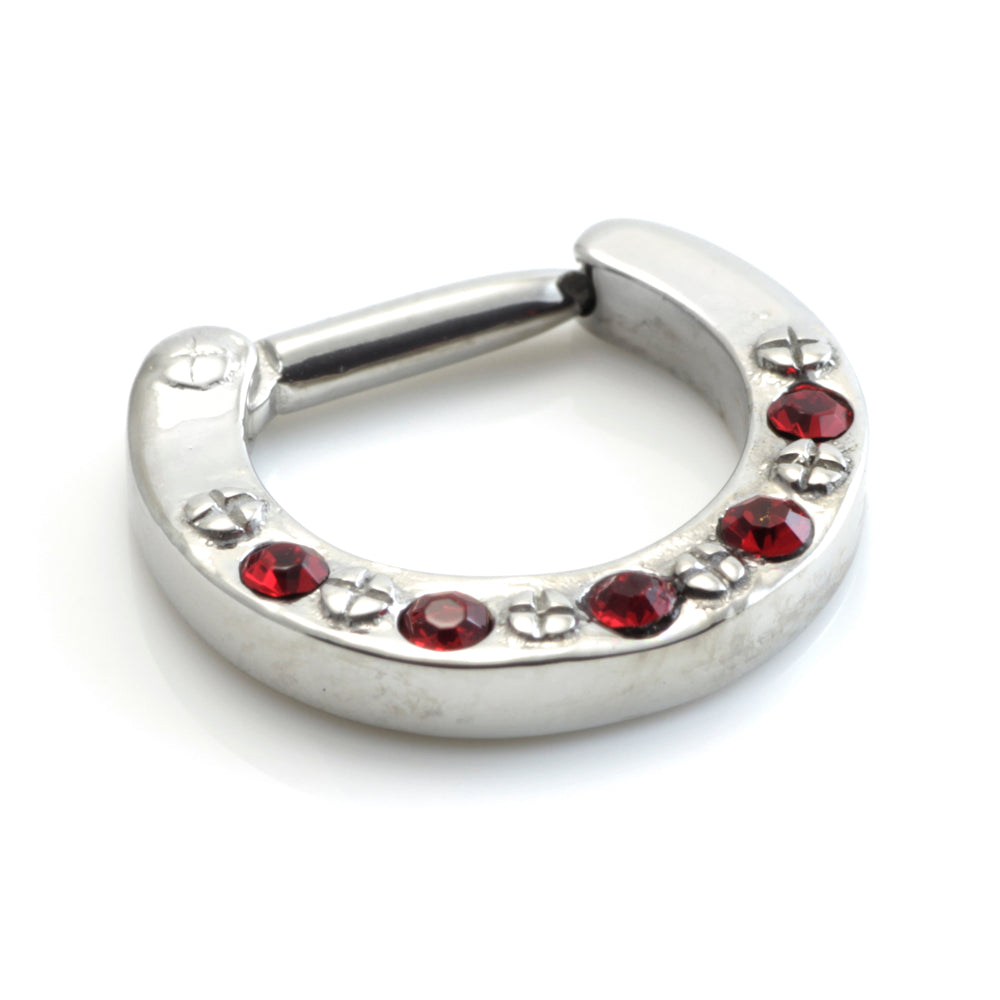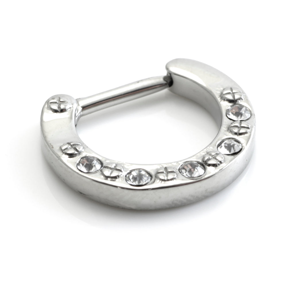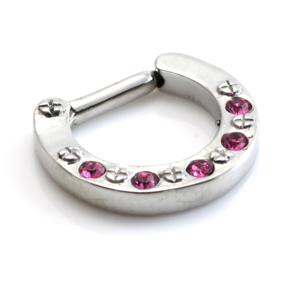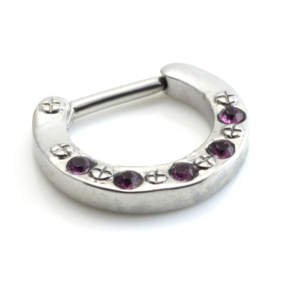 5 Swarovski Gems in 316L Steel Hinged Septum Ring 1.2mm x 8mm or 1.6mm x 8mm Gem Colours: Crystal, Aqua, Rose, AB, Ame, Peridot, Jet, Lt Siam.