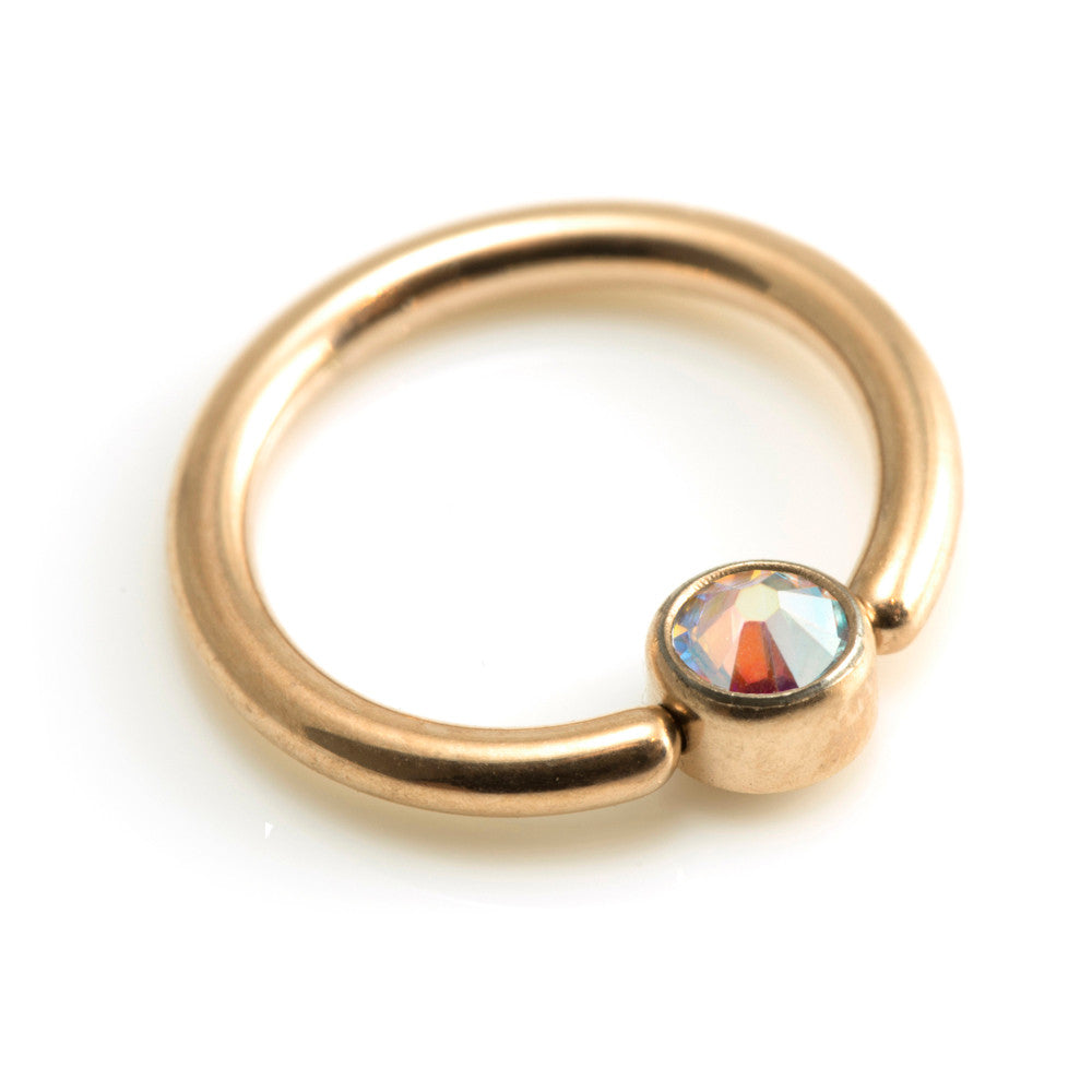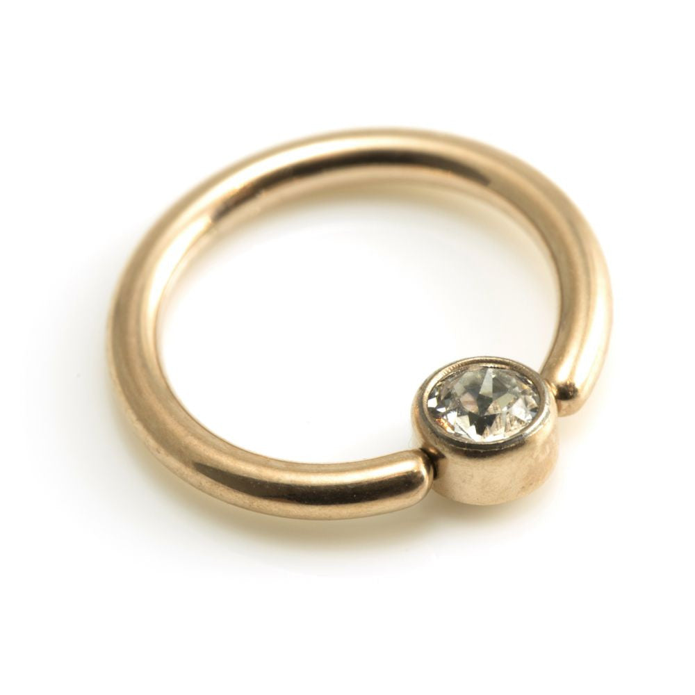 Gold PVD on Steel BCR with Flat Gem Disk - Ideal for smiley piercing and ears Size: 1.2mm x 8mm Disk Size: 3mm or 4mm Gem Colour: Crystal