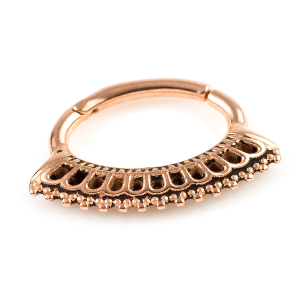 Rose Gold PVD on 316L Steel Daith / Septum Ring Size: 1.2mm x 6mm Can be worn in nose or ear