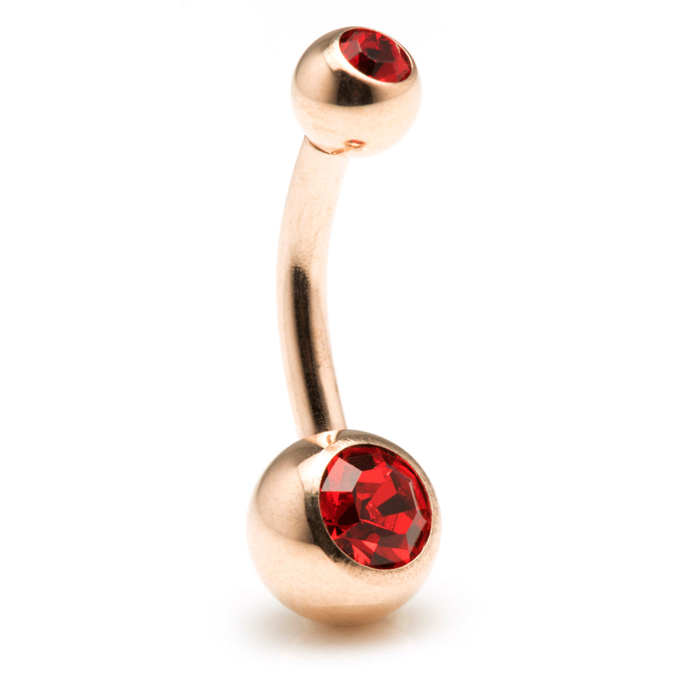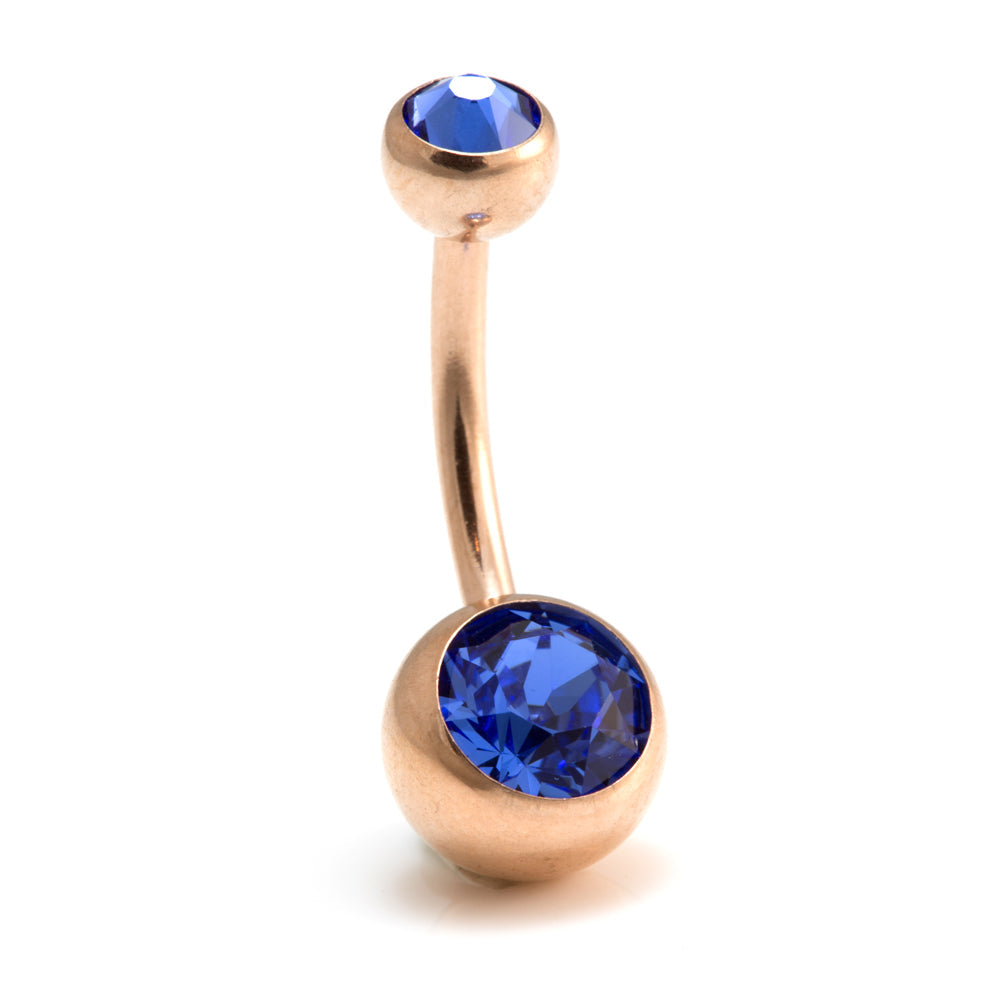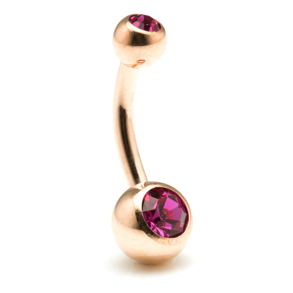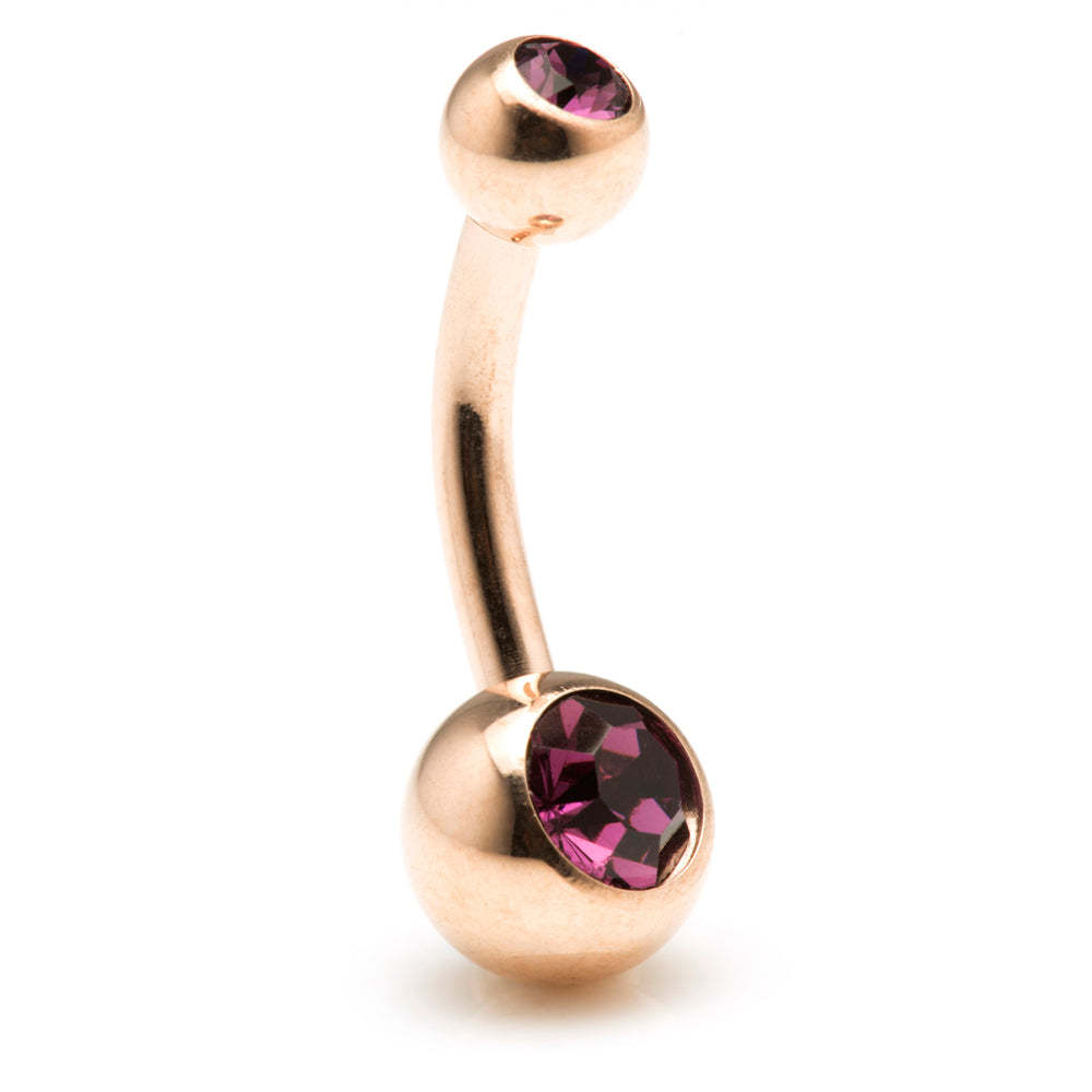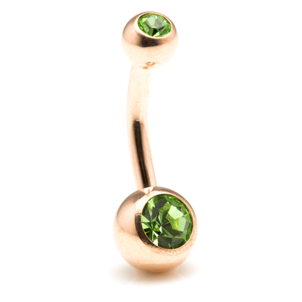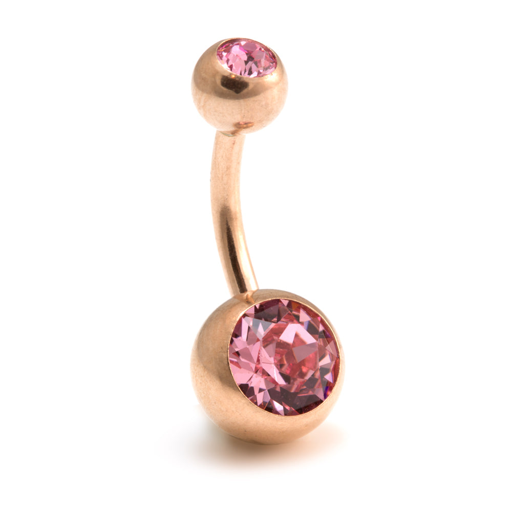 Rose Gold Steel Double Jewelled Navel Bar