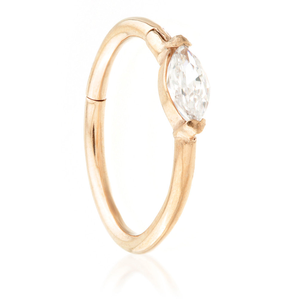 Rose Gold Steel Hinge CZ Jewels Marquise Conch Ring Gem Size: 6mm x 3mm Gauge: 1.2mm Ring Diameter: 11mm or 12mm