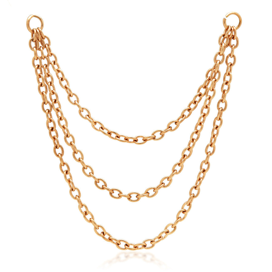 Rose Gold Steel Triple Hanging Chain Charm Chain Lengths: 16+22+28mm, 25+34+44mm, 32+44+56mm, 38+52+67mm, 50+64+79 O-ring Inner Diameter: 2mm 316L Surgical Steel
