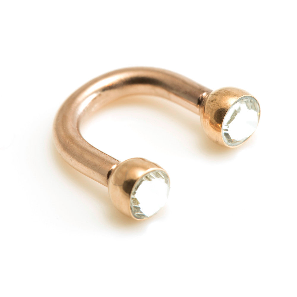 Gem Ear Barbell - 'U' Shaped for perfect fit around side of the ear Rose Gold PVD with crystal gems Size: 1.2mm x 4mm Gem Size: 2.5mm