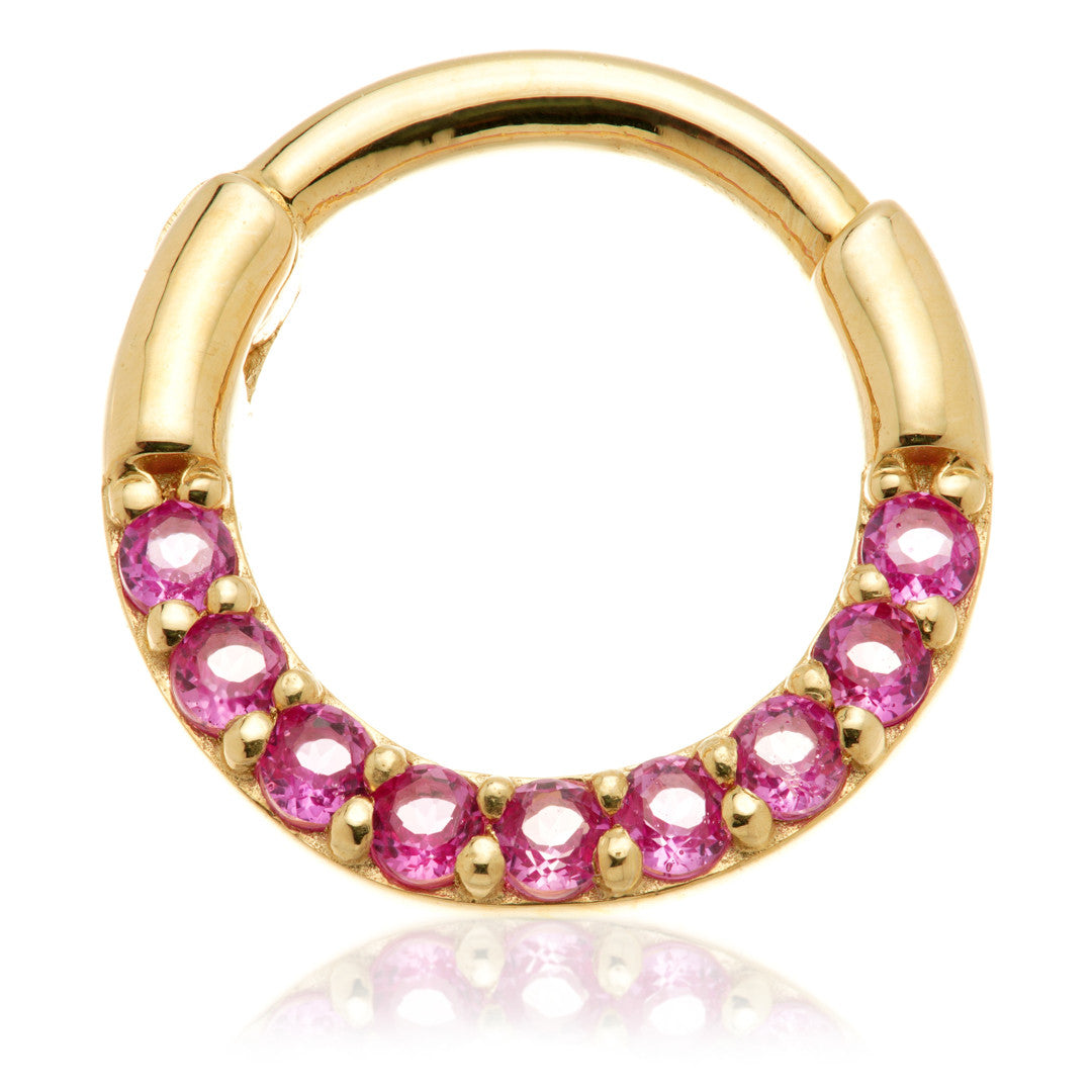 Solid 14ct Gold Pavé Ruby Daith Septum Ring