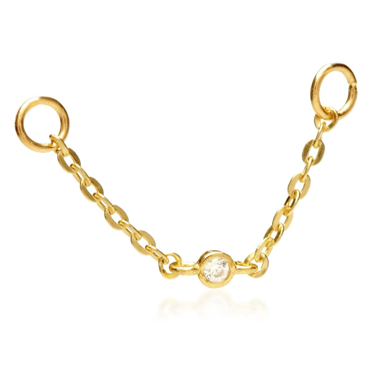 TISH LYON® Gold Hanging Chain with Mid Gem Colour: Yellow O-ring Inner Diameter: 1.8mm Chain Length: 20mm Gem Colours: CR CZ Gem Stones