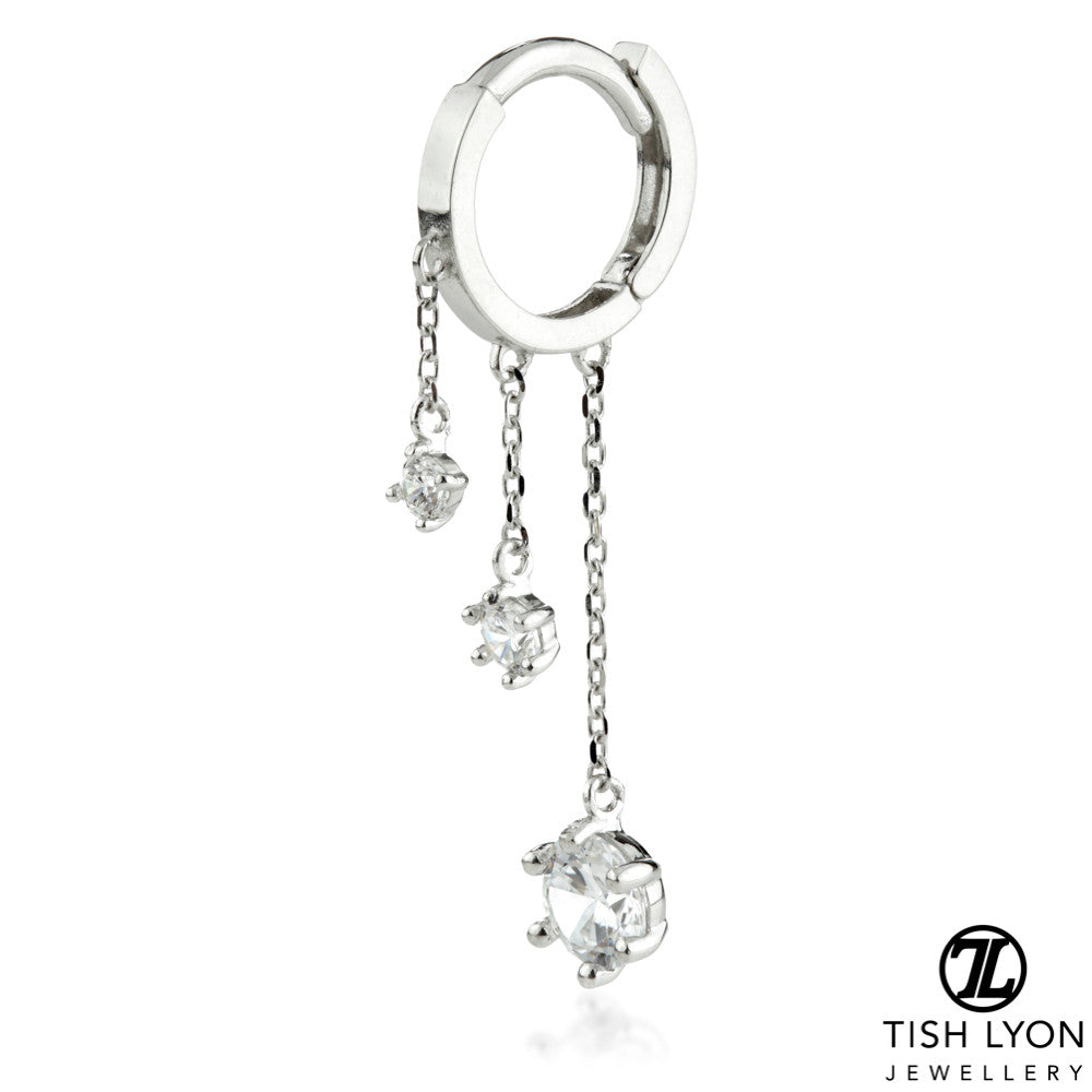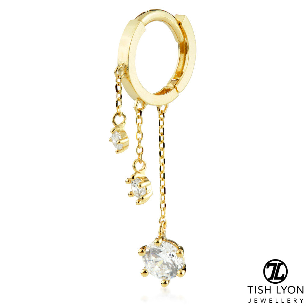 TISH LYON® - Gold Gold Triple Gem Chain Hinged Segment Ring 14ct or 9ct White or Yellow Gold Size: 1.2mm x 8mm For Cartilage, Rook, Tragus 14ct Suitable for initial piercing Laser Mark on inside of the bottom part of rim