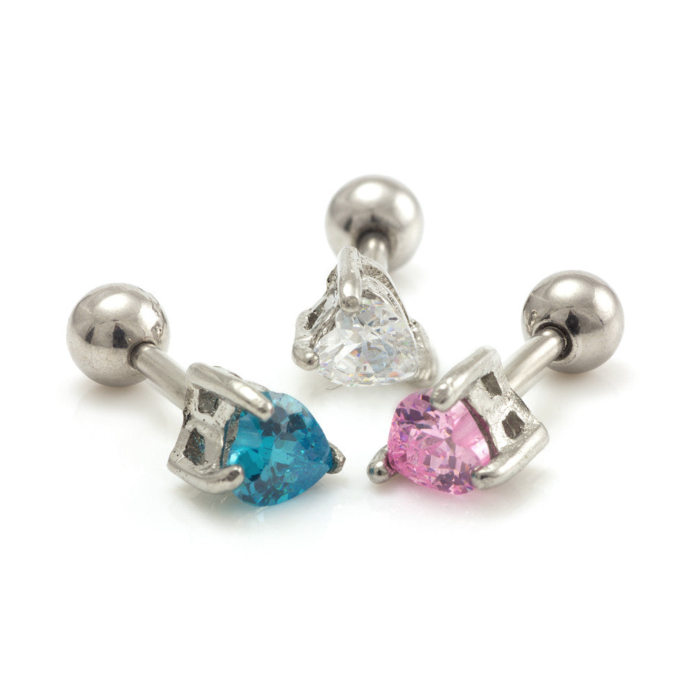 Heart Gem in cast steel setting attached to 316L steel microbar Size: 1.2mm x 6mm Gem Colours: Crystal, Aqua, Rose