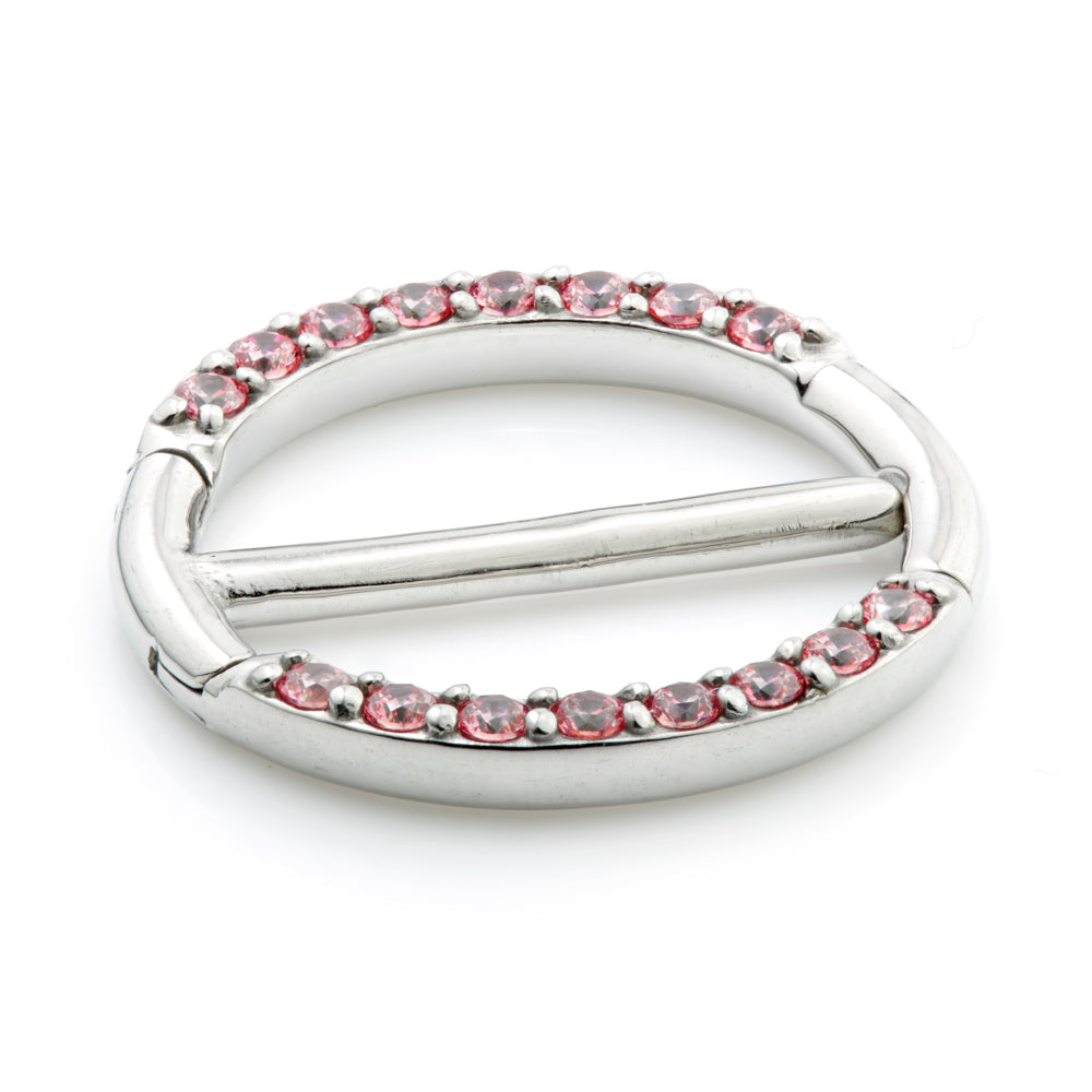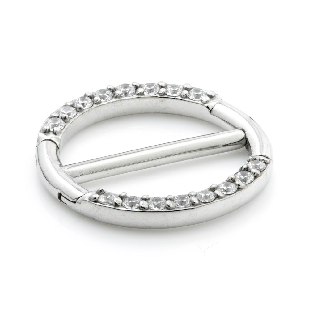 Pave Swarovski Double Hinge Steel Nipple Clicker - Similar fastening to septum rings Sizes: 12mm, 14mm, 16mm Gem: Crystal, Rose, BZ