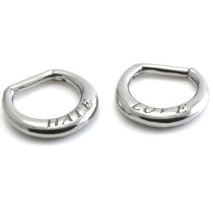 Love / Hate 316L Steel Hinged Septum Ring Gauge: 1.2mm or 1.6mm Size: 6mm or 8mm Love on one side, Hate on the other