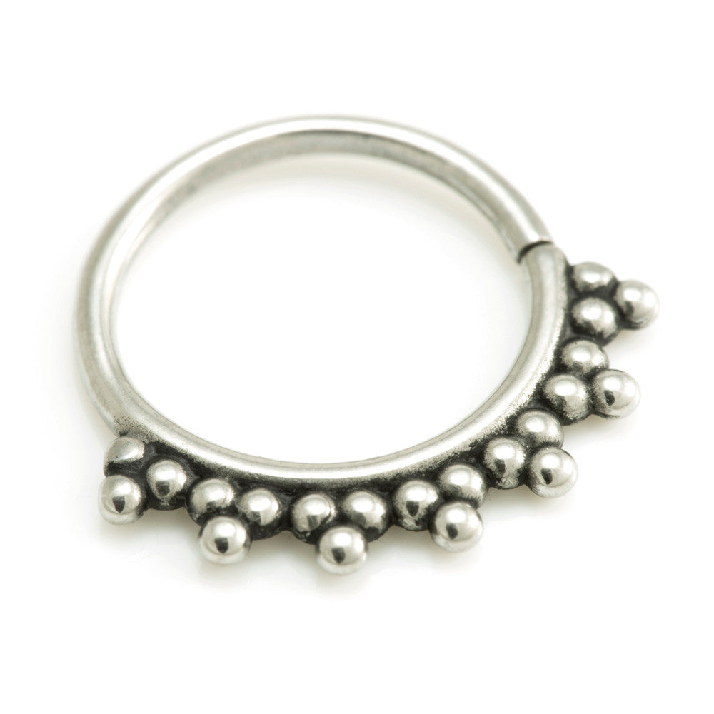 Open by hand - Seamless Septum / Ear Rings in Bohemian designs.Made from cast steel - annealed for easy opening Size: 0.8mm x 7mm or 8mm / 1.2mm x 10mm