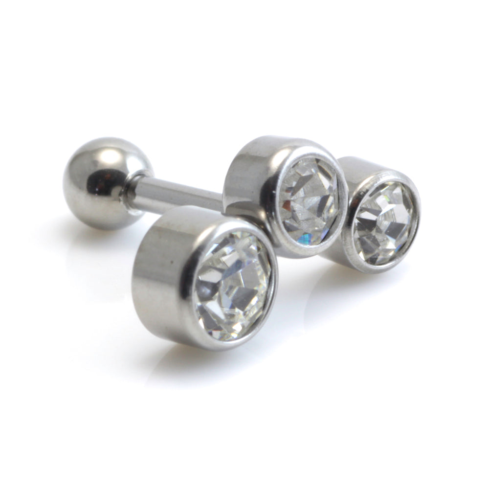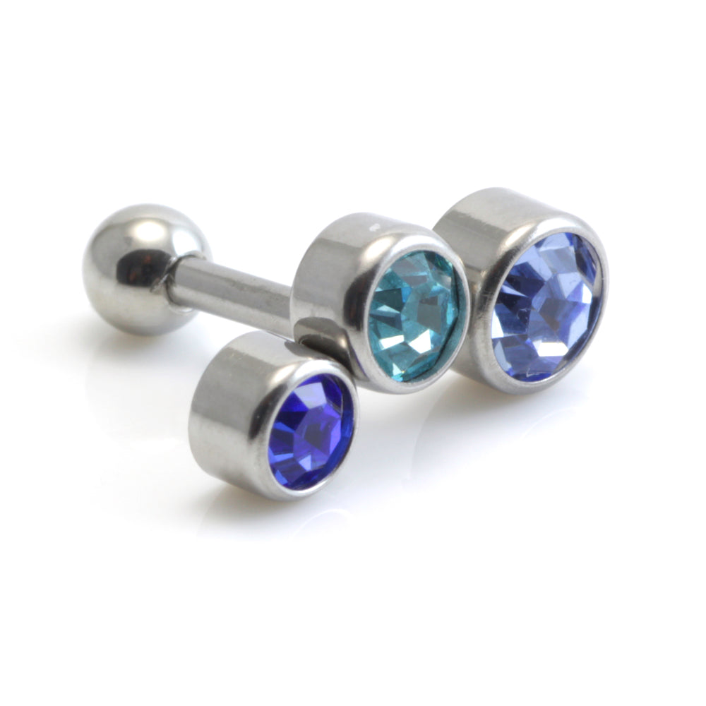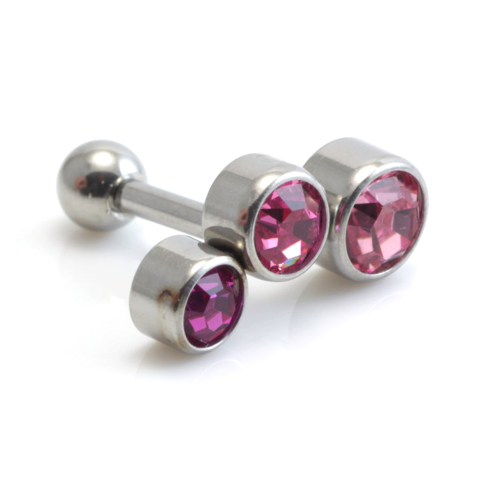 Round Gem in cast steel setting attached to 316L steel microbar Size: 1.2mm x 6mm Gem Colours: Crystal, Lt Rose, Aqua