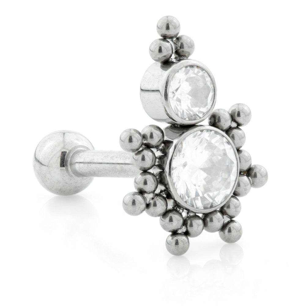 Threadless Ti Barbell Stem with Tribal Double Gem Attachment