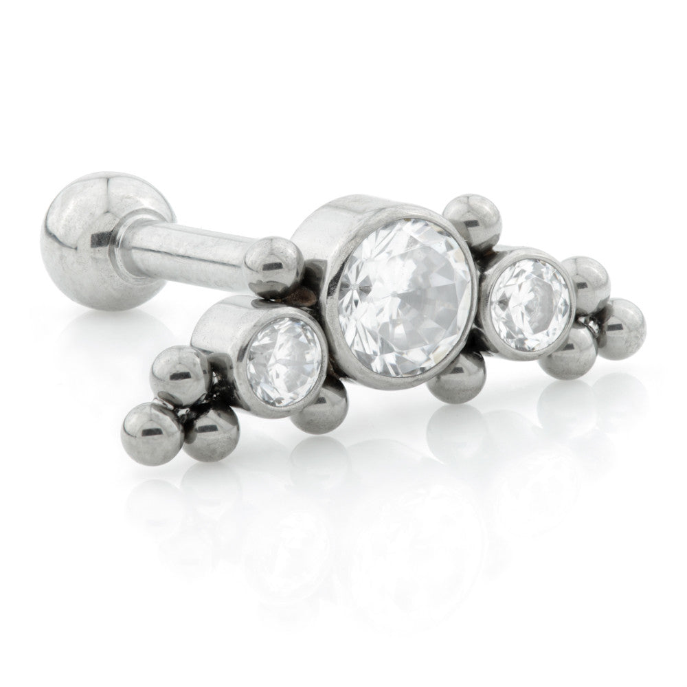 Threadless Ti Barbell with Gem and Bead Crescent Attachment
