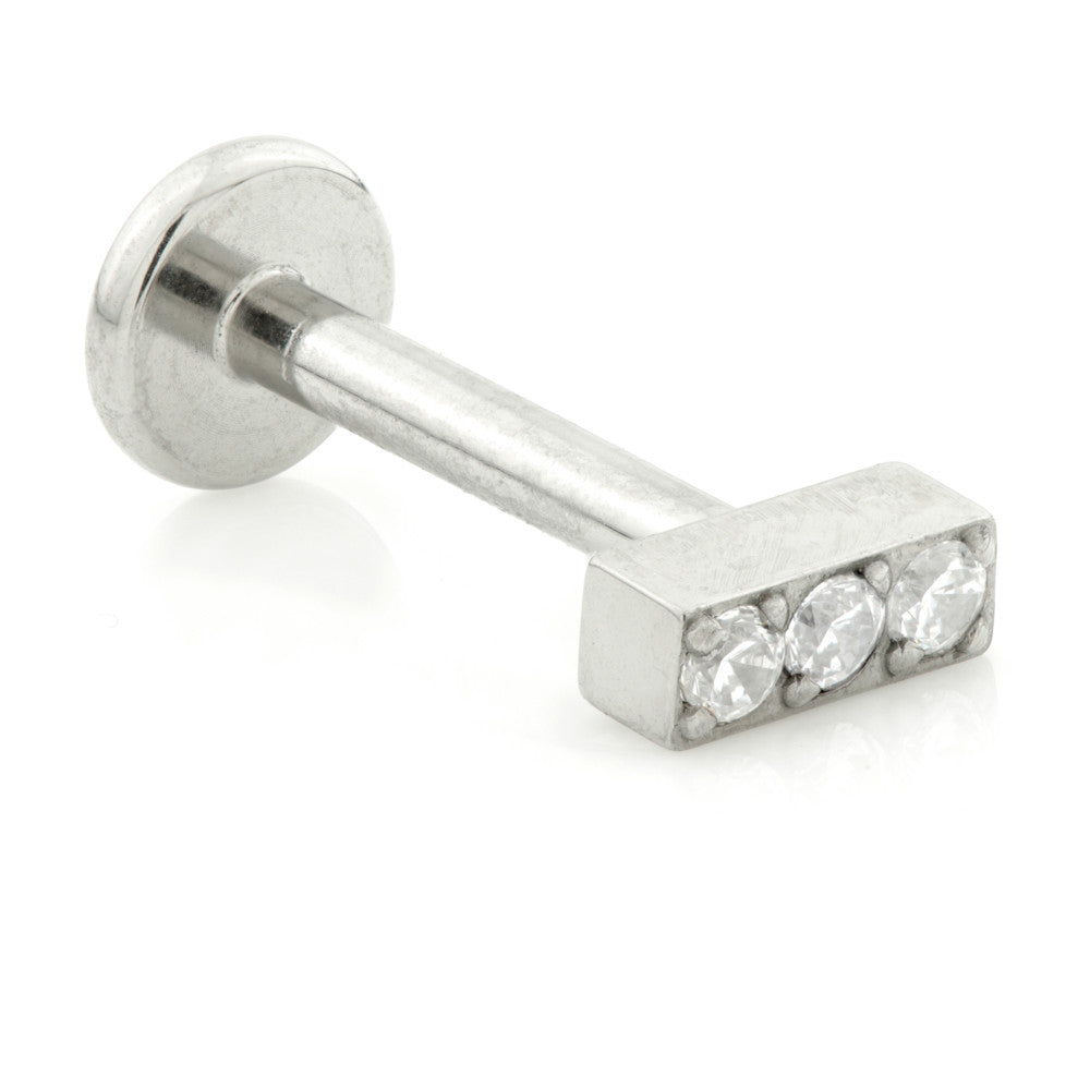 Threadless Ti 3 Gem Bar Labret Gem Colour: Crystal Size: 8mm Gauge: 1.2mm Fits POP bases Medical Grade Titanium 6Al-4VEli ASTM:F-136