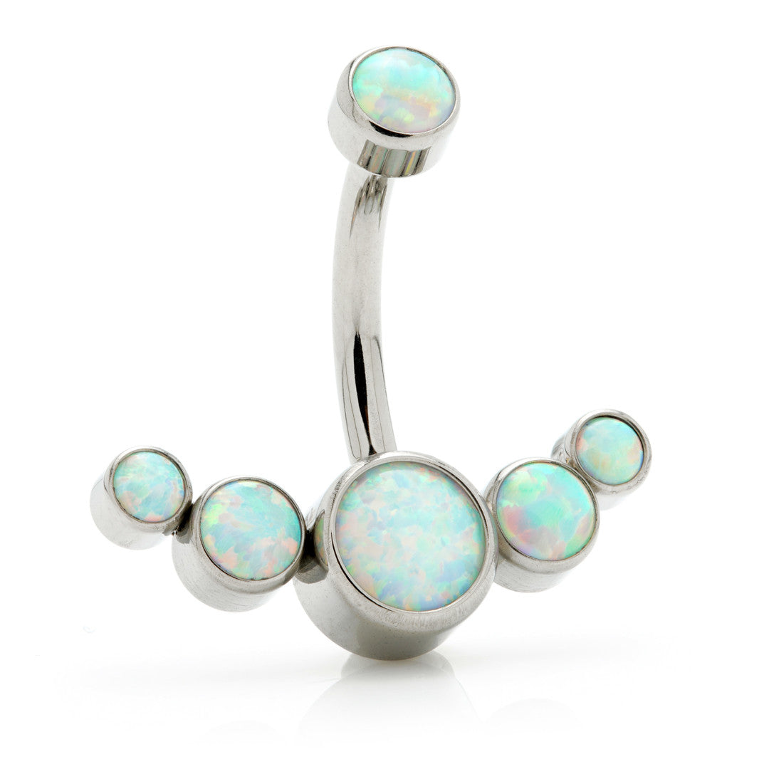 Threadless Ti Double Opal Disk Navel Opal Colour: White Size: 1.6mm x 10/12mm 1.6mm gauge with 1.2mm internal thread Medical Grade Titanium 6Al-4VEli ASTM:F-136