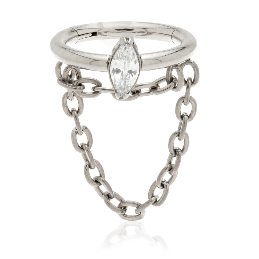 Ti Couture Marquise Hinge Ring With Double Chain Gauge: 1.2mm Diameter: 8mm / 10mm Medical Grade Titanium 6Al-4VEli ASTM:F-136