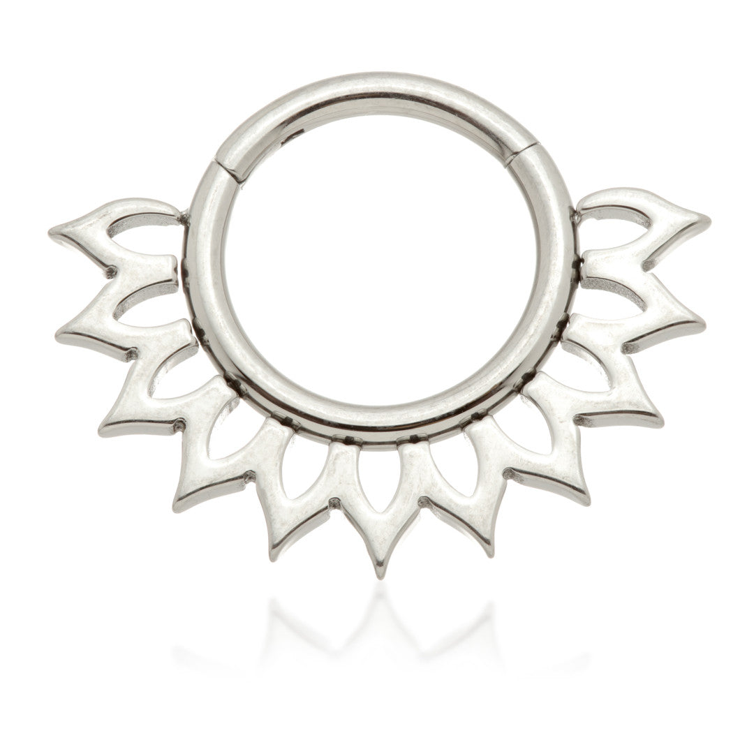 Ti Couture Open Petal Hinged Ring Gauge: 1.2mm Size: 8mm Medical Grade Titanium 6Al-4VEli ASTM:F-136