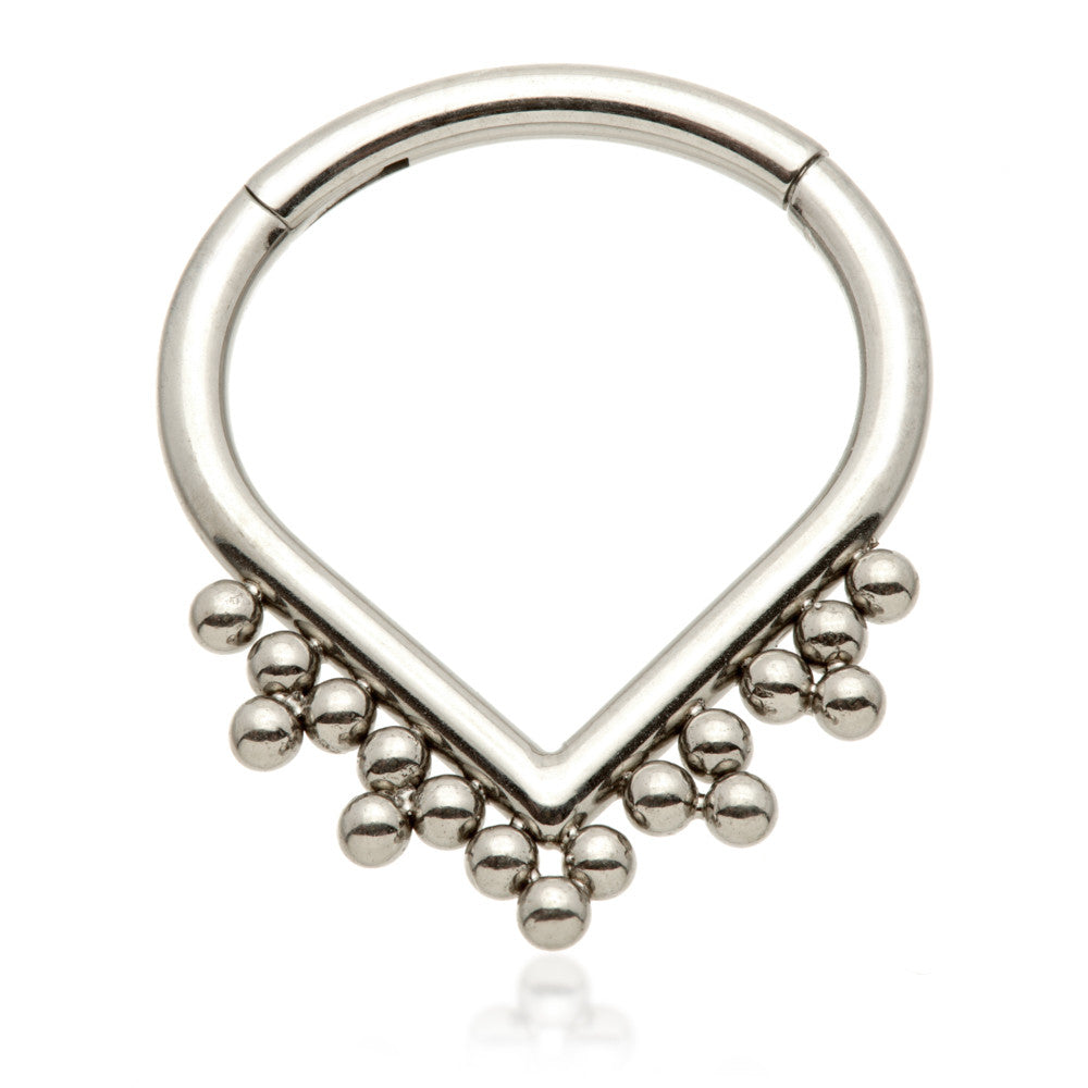 Titanium Wishbone Tribal Bead Cluster Hinged Ring Gauge: 1.2mm Sizes: 8/10mm Medical Grade Titanium 6Al-4VEli ASTM:F-136