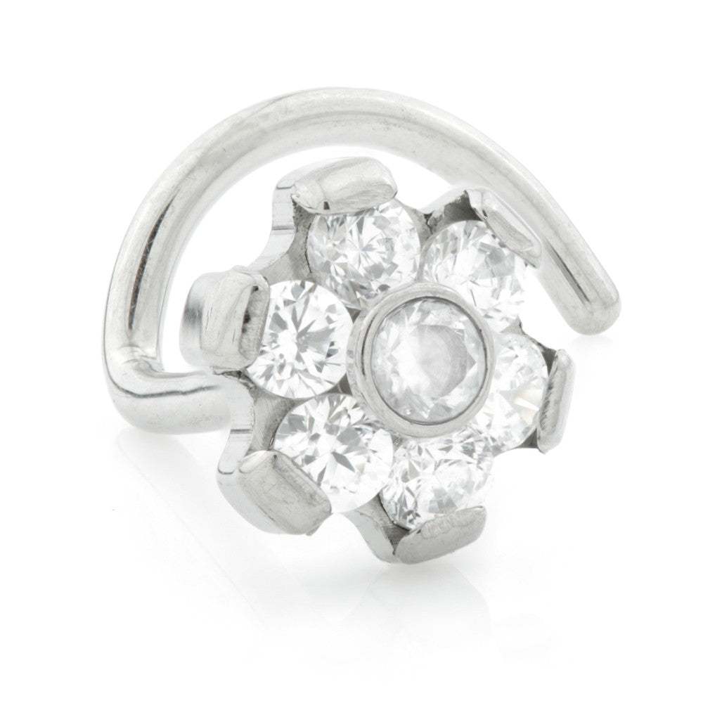 Titanium Flower Gem Nose Stud Gauge: 0.8mm Length: 6mm Flower Size: 5mm Gem Colour: Crystal Medical Grade Titanium 6Al-4VEli ASTM:F-136