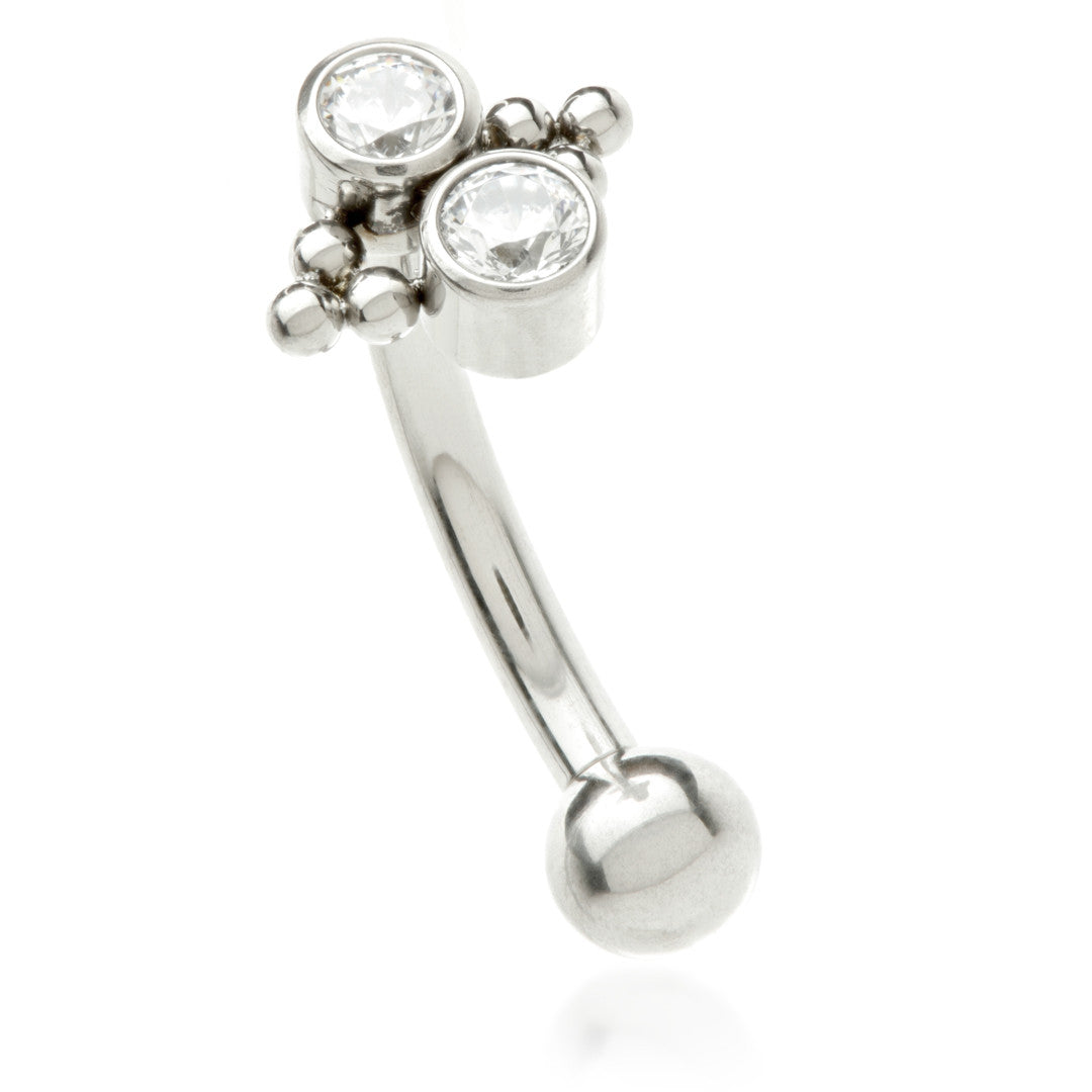 Titanium Internal Double Bezel with Side Beads Rook/Eyebrow Bar Gauge: 1.2mm Size: 8mm Ball Size: 3mm Gem Colour: CR CZ Gem Stones Medical Grade Titanium 6Al-4VEli ASTM:F-136