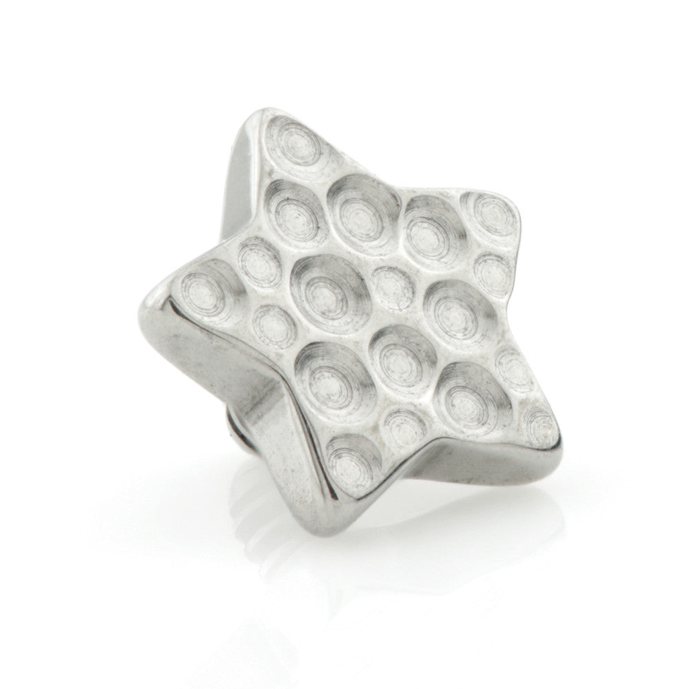 Internal Titanium Hammered Star Attachment Gauge: 1.2mm (0.9mm thread) Size: 5mm Medical Grade Titanium 6Al-4VEli ASTM:F-136
