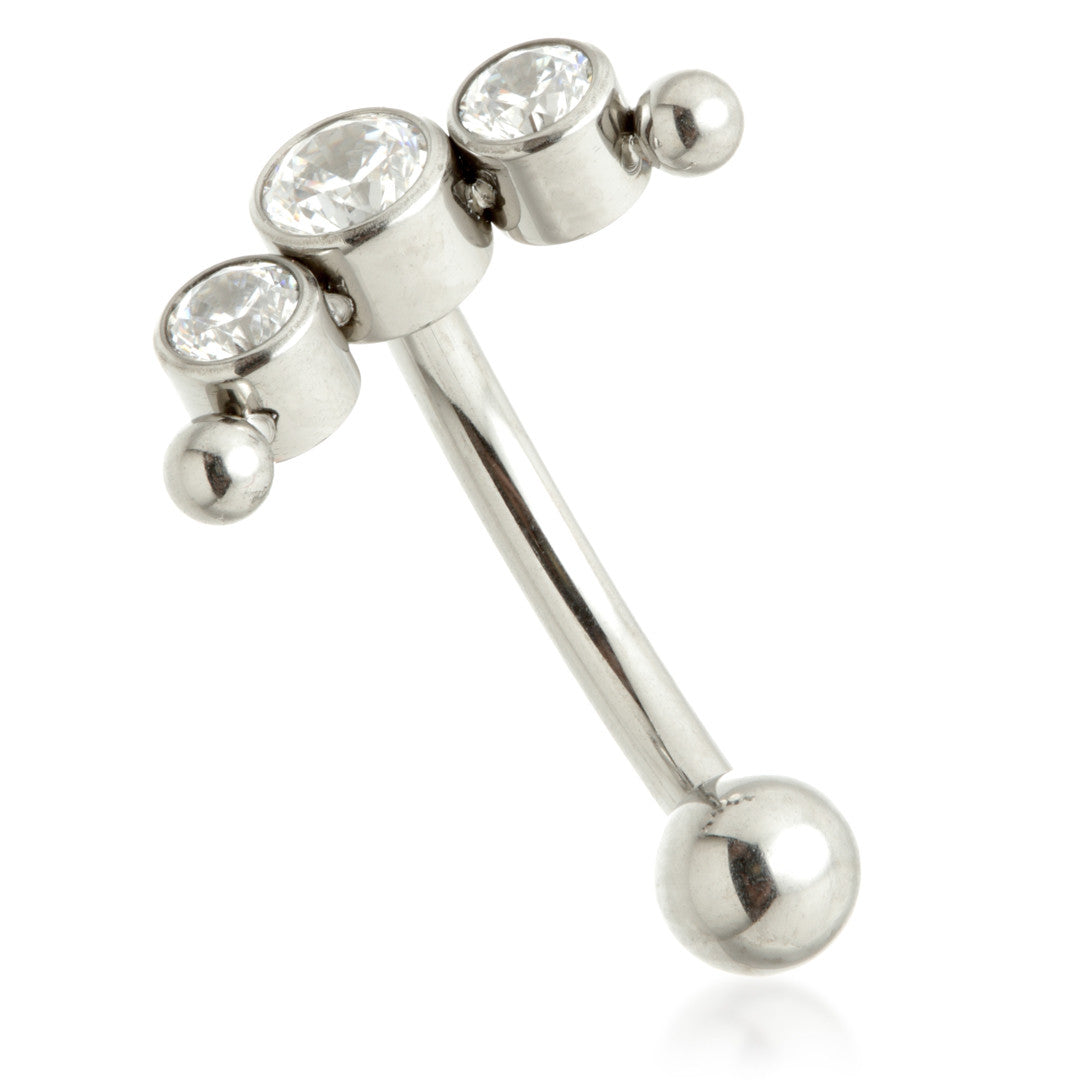 Titanium Internal Jewelled Bezel Crescent Rook/Eyebrow Bar Gauge: 1.2mm Size: 8mm Ball Size: 3mm Gem Colour: CR CZ Gem Stones Medical Grade Titanium 6Al-4VEli ASTM:F-136