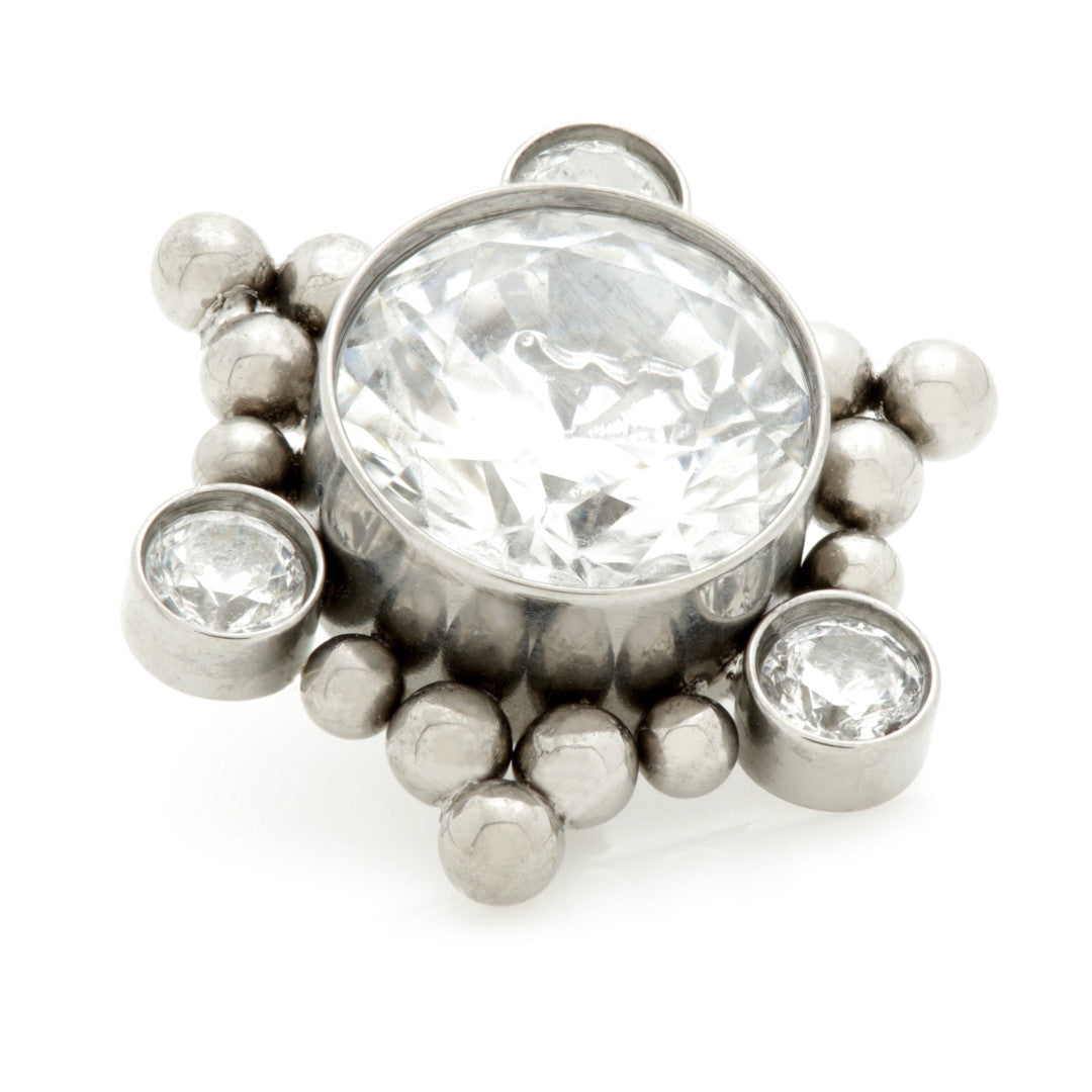 Titanium Internal Jewelled Bezel with Beads Attachment Gauge: 1.2mm (0.9mm thread) Size: 7.5mm x 8mm Gem Colour: CR CZ Gem Stones Medical Grade Titanium 6Al-4VEli ASTM:F-136