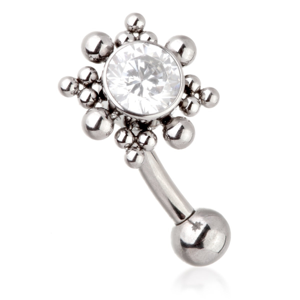 Titanium Internal Jewelled Bezel with Beads Rook/Eyebrow Bar Gauge: 1.2mm Size: 8mm Ball Size: 3mm Gem Colour: CR CZ Gem Stones Medical Grade Titanium 6Al-4VEli ASTM:F-136