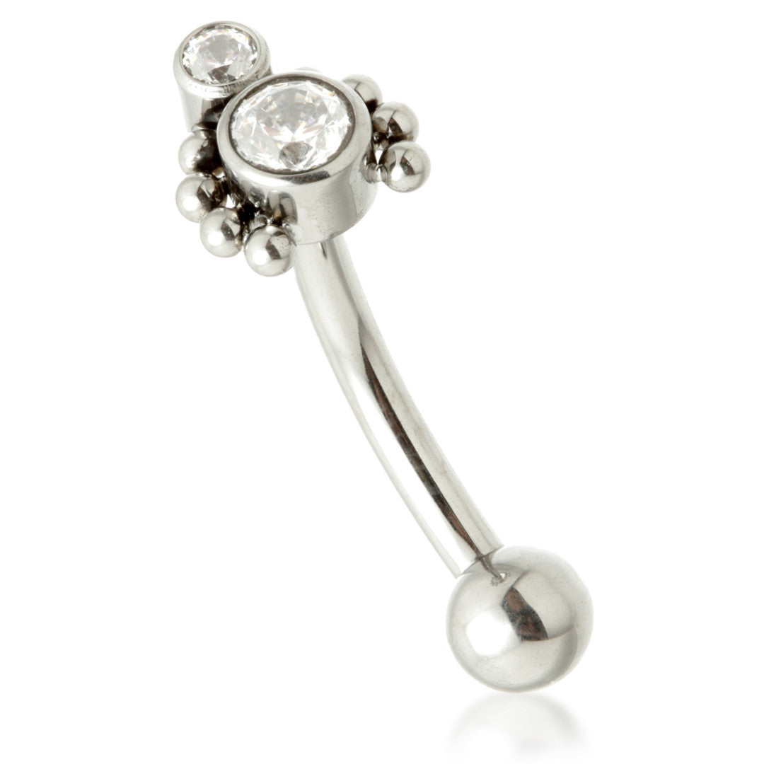 Titanium Internal Jewelled Bezel with Surrounding Beads Rook/Eyebrow Bar Gauge: 1.2mm Size: 8mm Ball Size: 3mm Gem Colour: CR CZ Gem Stones Medical Grade Titanium 6Al-4VEli ASTM:F-136