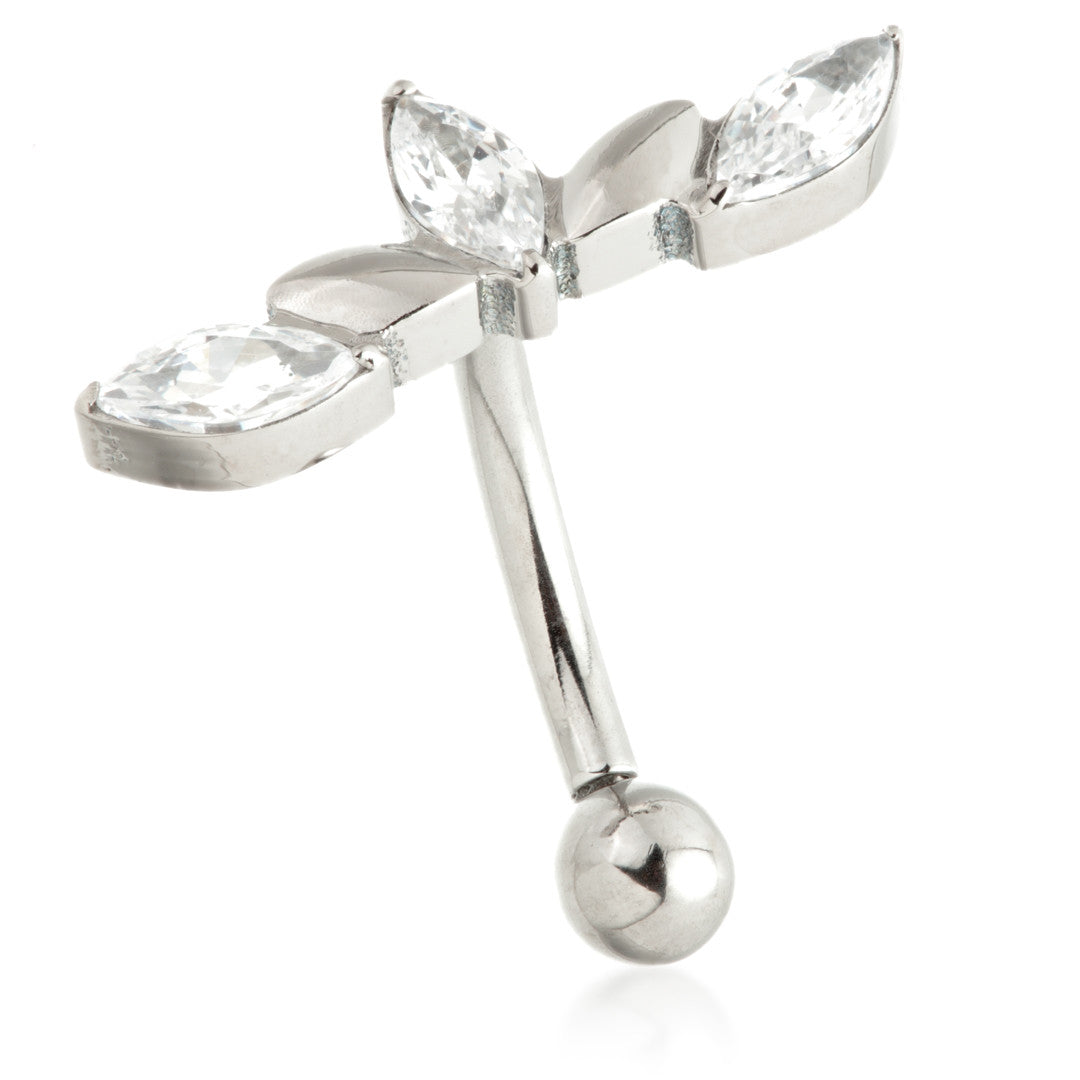 Ti Internal Marquise Jewelled Cluster Rook Bar Gauge: 1.2mm (0.9mm thread) Length: 8mm Gem Colour: CR For Rook, Cartilage, 2nd Lobe, Eyebrow, etc Medical Grade Titanium 6Al-4VEli ASTM:F-136