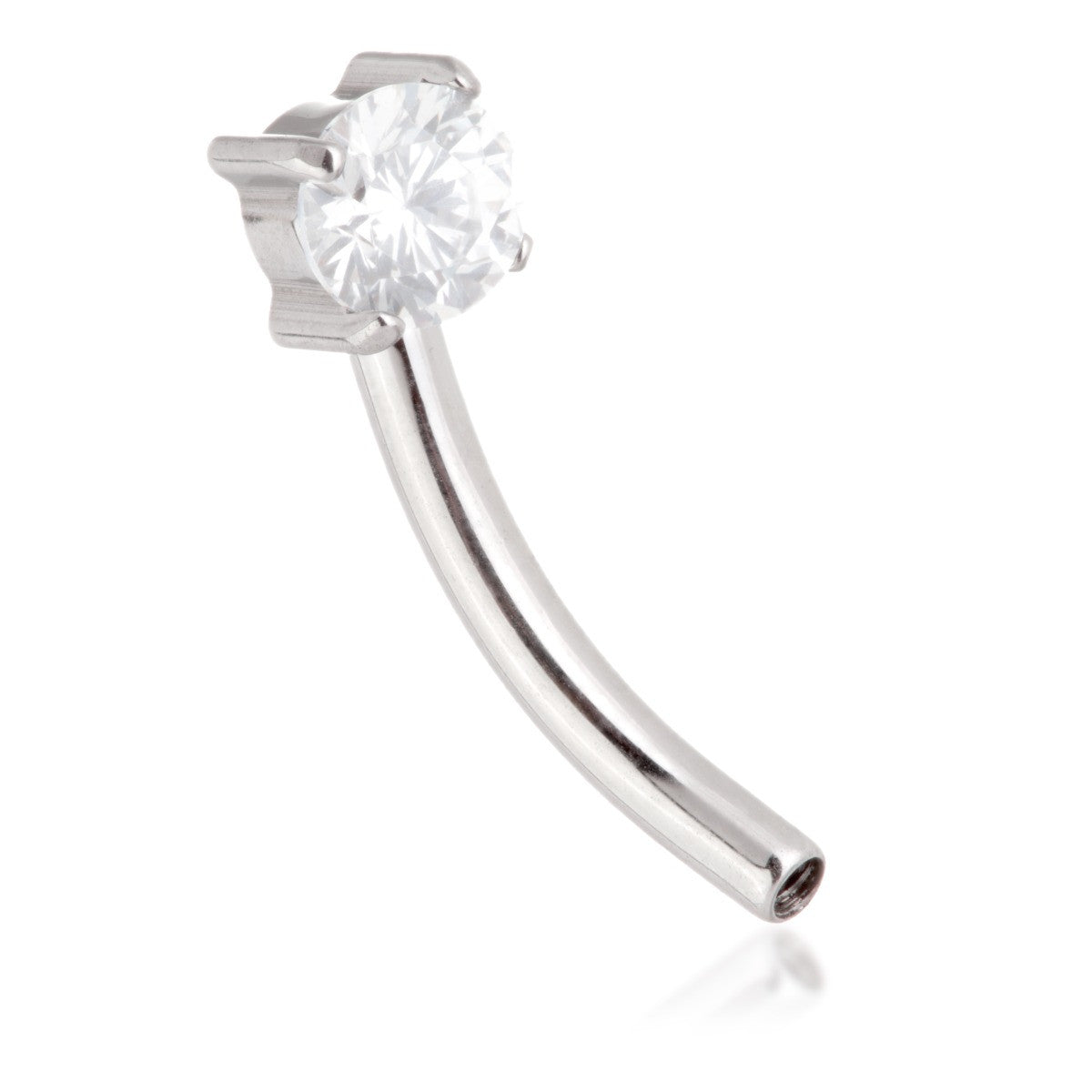 Titanium Internal Micro Banana Stem with Fixed Prong Gem Gauge: 1.2mm Size: 8mm Fixed Disk: 3mm Gem Colour: Crystal CZ Gem Stones Medical Grade Titanium 6Al-4VEli ASTM:F-136