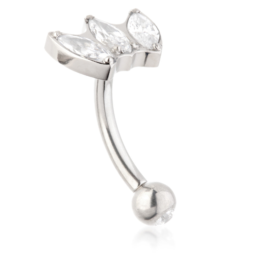 Ti Internal Triple Marquise Rook Bar Gauge: 1.2mm Size: 8mm Gem Colour: CR CZ Gem Stones Medical Grade Titanium 6Al-4VEli ASTM:F-136