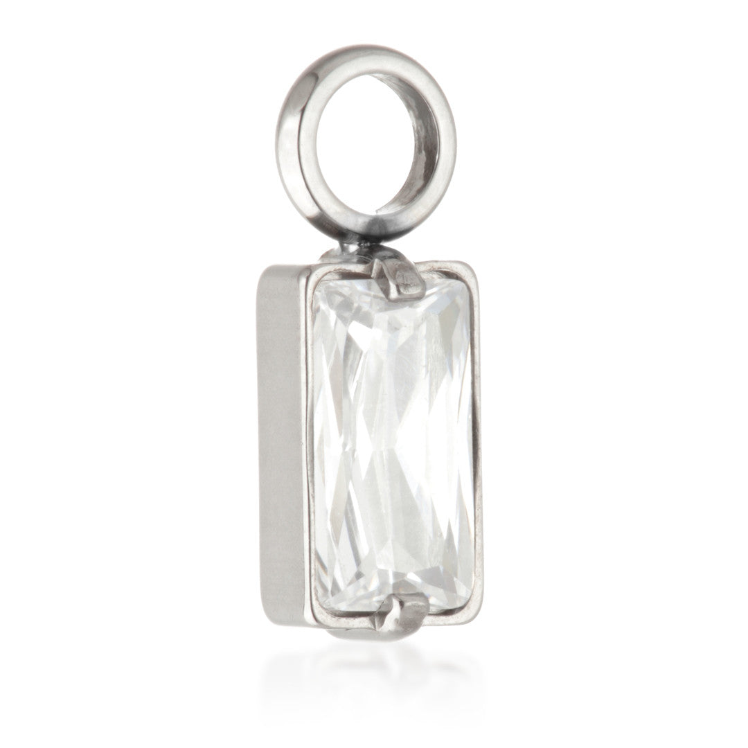 Ti Jewelled Baguette Charm Attachment Size: 5mm x 2.5mm O-ring diameter: 2.5mm Medical Grade Titanium 6Al-4VEli ASTM:F-136