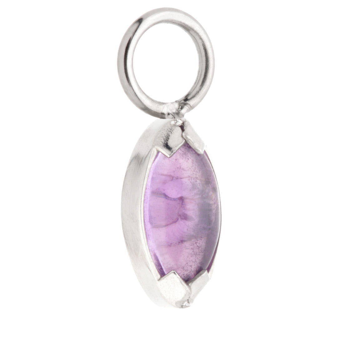 Ti Mini Marquise Amethyst Charm O-ring Diameter: 2.5mm Attachment Size: 4*2mm Stone Colour: Amethyst Medical Grade Titanium 6Al-4VEli ASTM:F-136