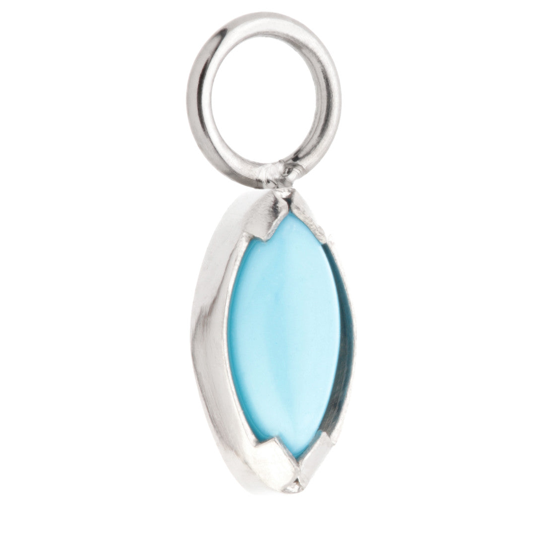 Ti Mini Marquise Turquoise Charm O-ring Diameter: 2.5mm Attachment Size: 4*2mm Stone Colour: Turquoise Medical Grade Titanium 6Al-4VEli ASTM:F-136