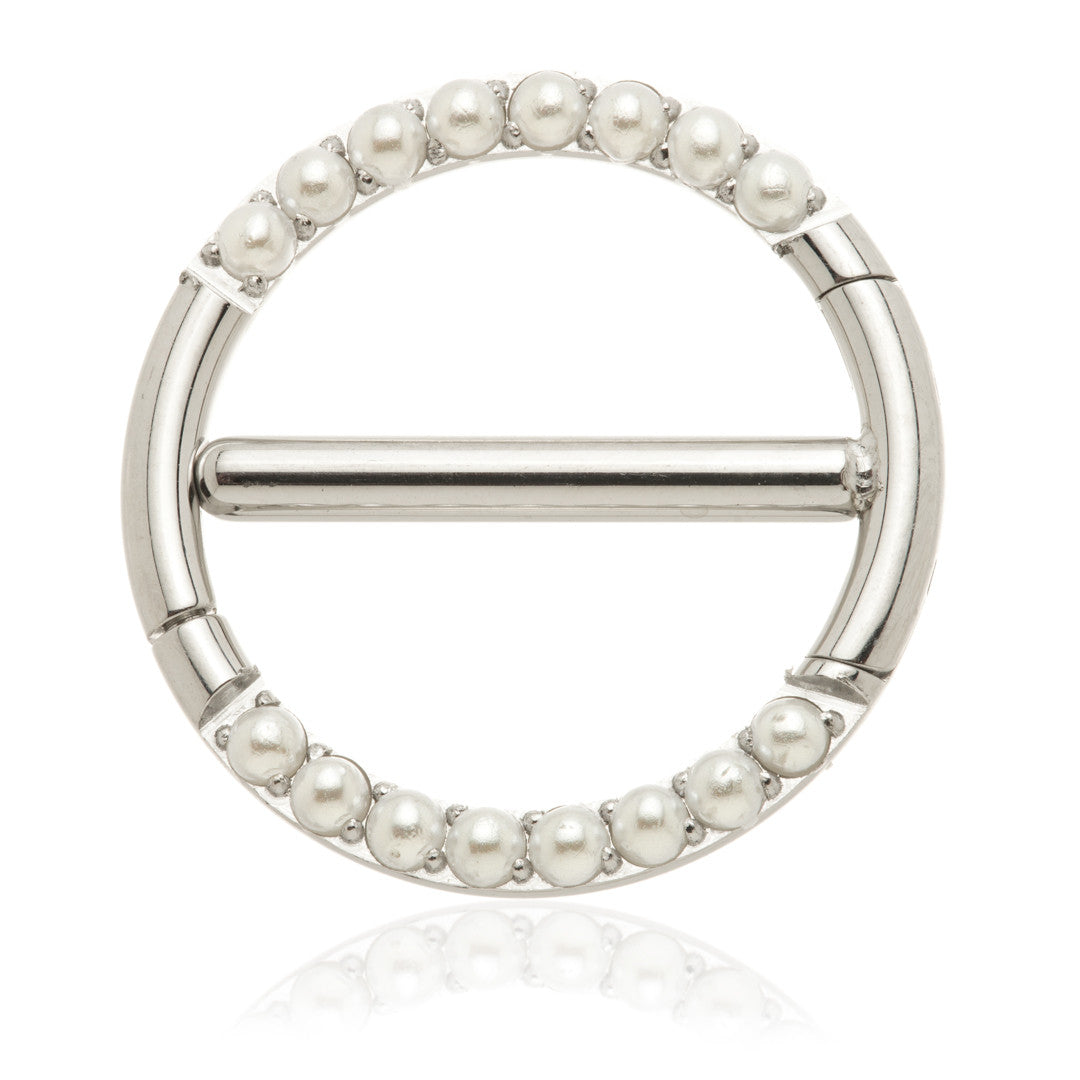 Ti Pearl Double Nipple Clicker Gauge: 1.6mm Sizes: 12mm / 14mm / 16mm Medical Grade Titanium 6Al-4VEli ASTM:F-136